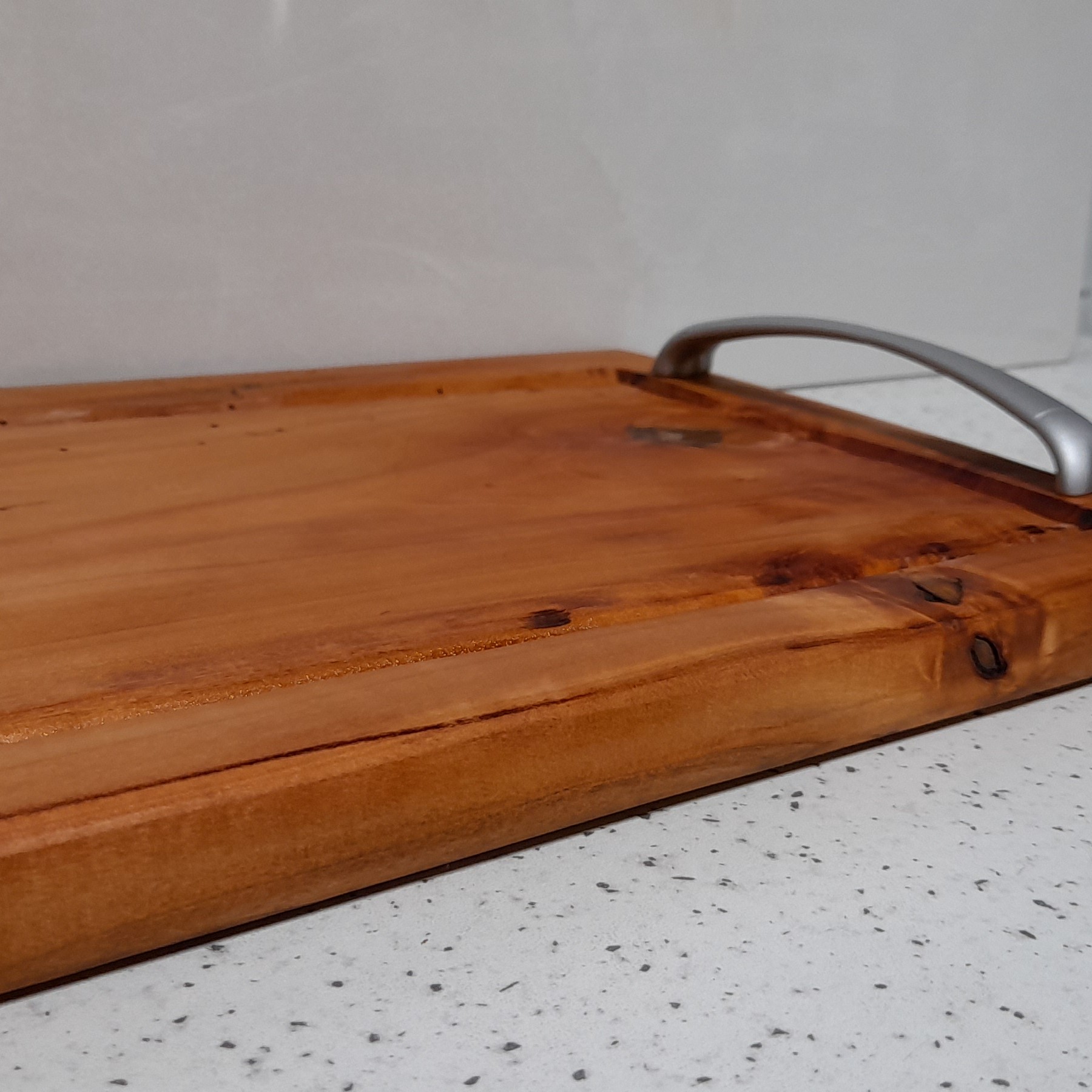 با سلام سینی چوبی دسته فلزی چوب زبان گنجشک مناسب برای سرو و پذیرایی ابعاد ۴۵ در ۲۱ آغشته شده به روغن چوب ارسال سریع به سرتاسر کشور
