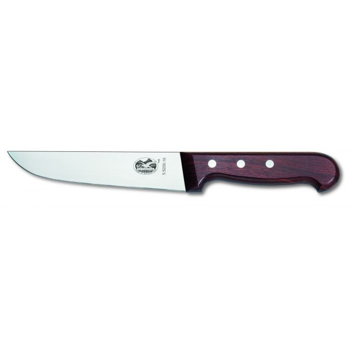 چاقوی قصابی قصابی Victorinox Straight Back Blade دارای طول تیغه 31 سانتی متر می باشد. این چاقوهای چند منظوره برای پردازش قطعات بزرگ و ضخیم گوشت عالی هستند. دسته از چوب رز با چسبندگی فوق العاده خوب ساخته شده است. تیغه چاقو از فولاد ضد زنگ با کربن بالا با روکش پولیش آینه ای ساخته شده است. سختی تیغه مناسب و زاویه برش آزمایش شده با لیزر، حفظ لبه بالایی را تضمین می کند. تیغه صاف و پهن است.