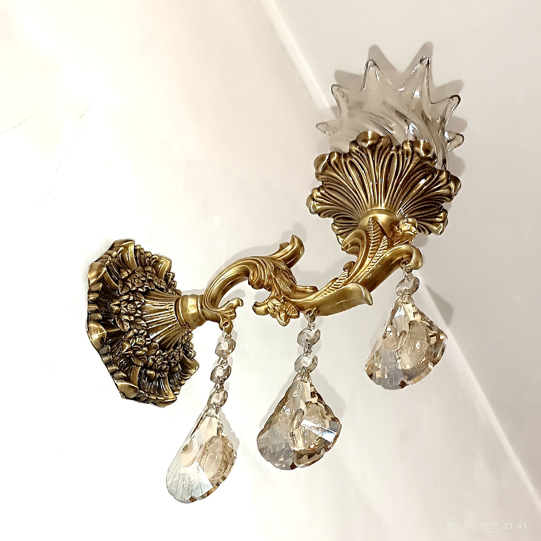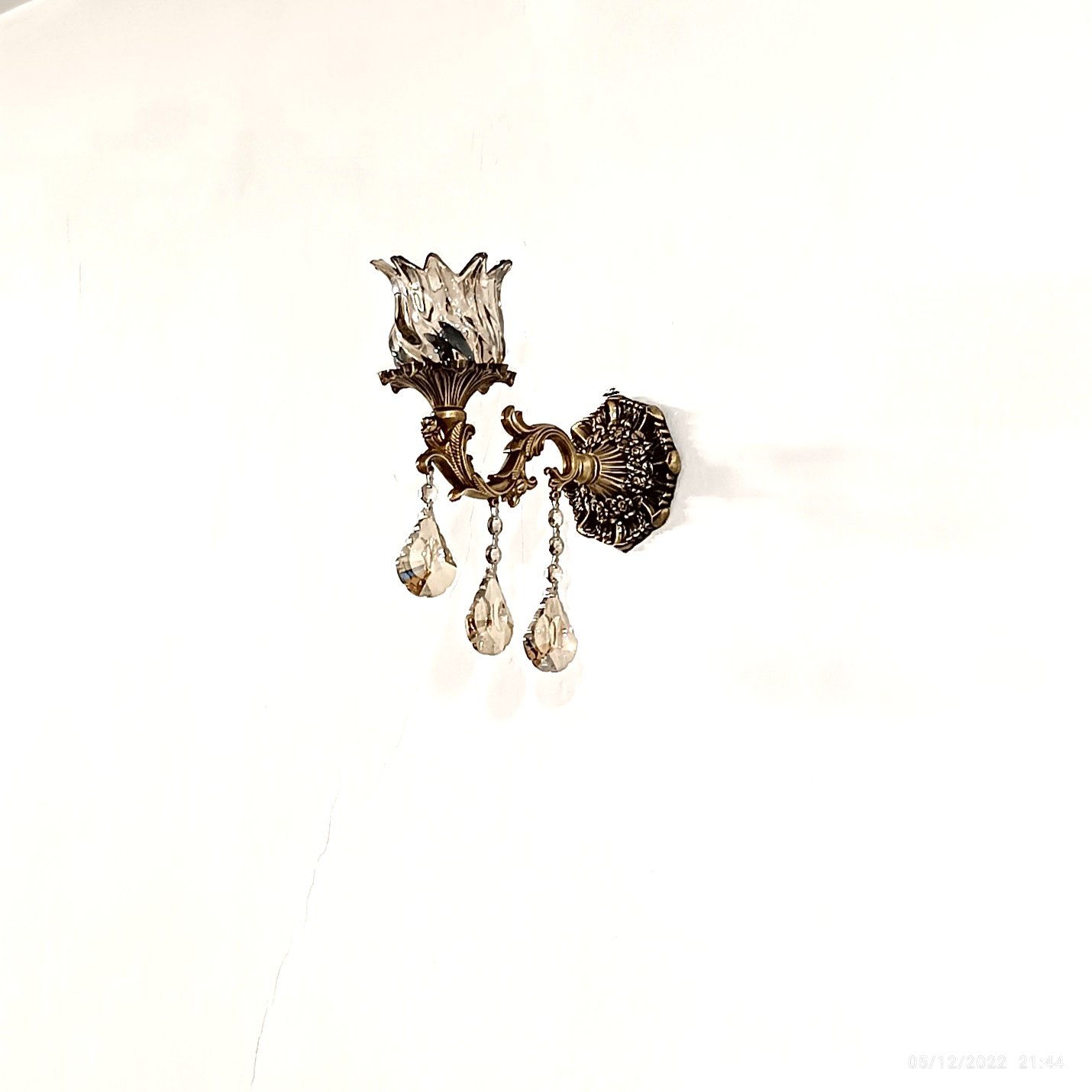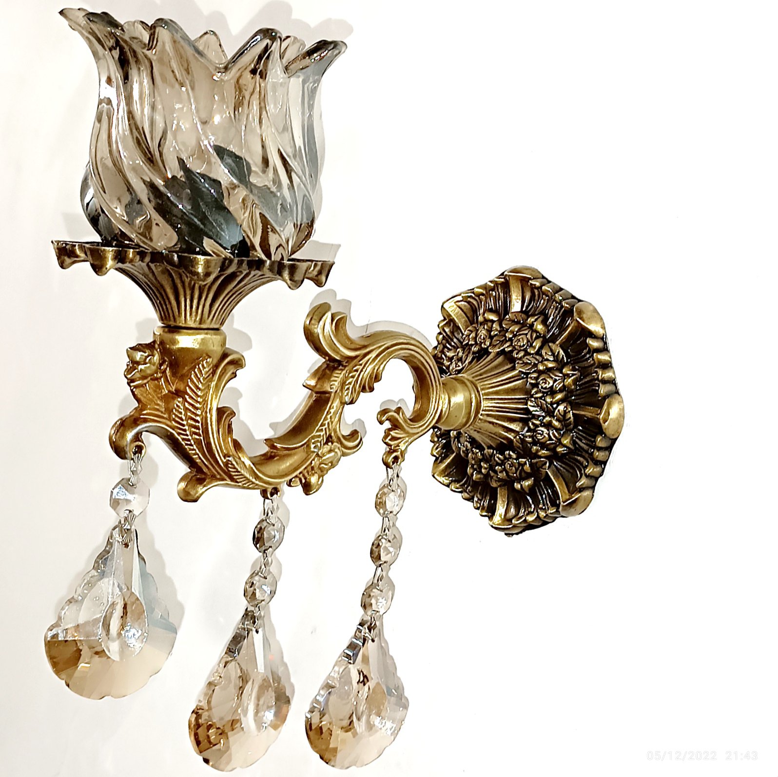 لوستر تک شاخه دیواری یا دیوار کوب و چراغ دیواری مدل آرامیس تک شعله رنگ آنتیک با ضمانت لاله و کریستال درجه یک شامپاین لیز کلیه محصولات دارای ضمانت نامه کتبی رنگ و گارانتی اصالت و سلامت فیزیکی کالا می باشد .