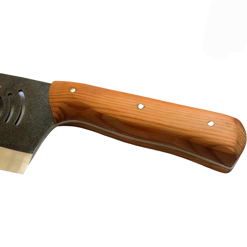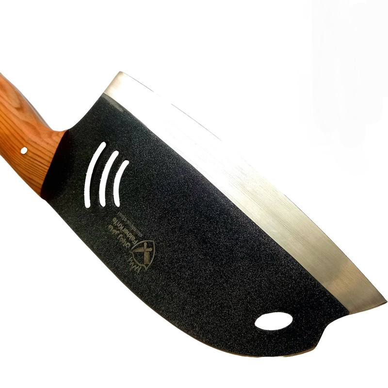 این نوع ساطور که به خاطر شبهات آن به دلفین، به ساطور دلفین شهرت داردومناسب سرآشپزها و آشپزی در طبیعت و انواع کار های تخته کاری می باشد و در برش و خرد کردن انواع گوشت و سبزیجات و... مهارت دارد و به خاطر زیبایی آن طرفدار زیادی دارد جنس تیغه این محصول از استیل ودارای پوشش رنگ کوره ای الکترو استاتیک می باشد که نه پاک می شود و نه زنگ میزند و تیزی ثابتی دارد و جنس دسته این محصول از چوب مرغوب و با کیفیت ترمووود می باشد که ضد آب هست و در برابر آب کیفیت ثابتی دارد