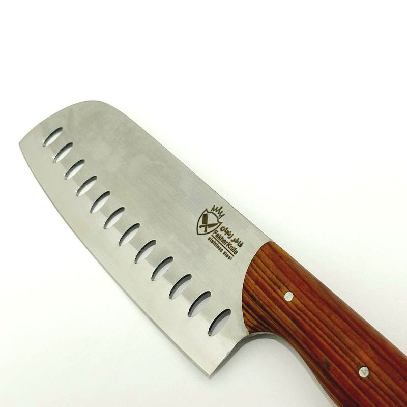 این نوع چاقو به چاقوی سانتوکو شهرت دارد کاملا تیز و سبک می باشد و مناسب سرآشپزها و آشپزی در طبیعت و انواع کارهای تخته کاری می باشدودربرش و خرد کردن انواع گوشت و سبزیجات و... مهارت دارد جنس تیغه این محصول از استیل می باشدو جنس دسته این محصول از چوب مرغوب و با کیفیت ترمووود می باشدکه در برابر آب کیفیت ثابتی دارد