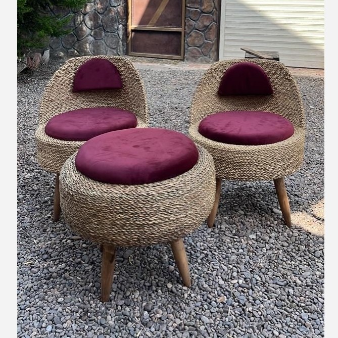 مبلمان حصیری دو نفره دو صندلی و یک میز قطر 50 ،رنگ دلخواه مبلمونسرا مدل 217455