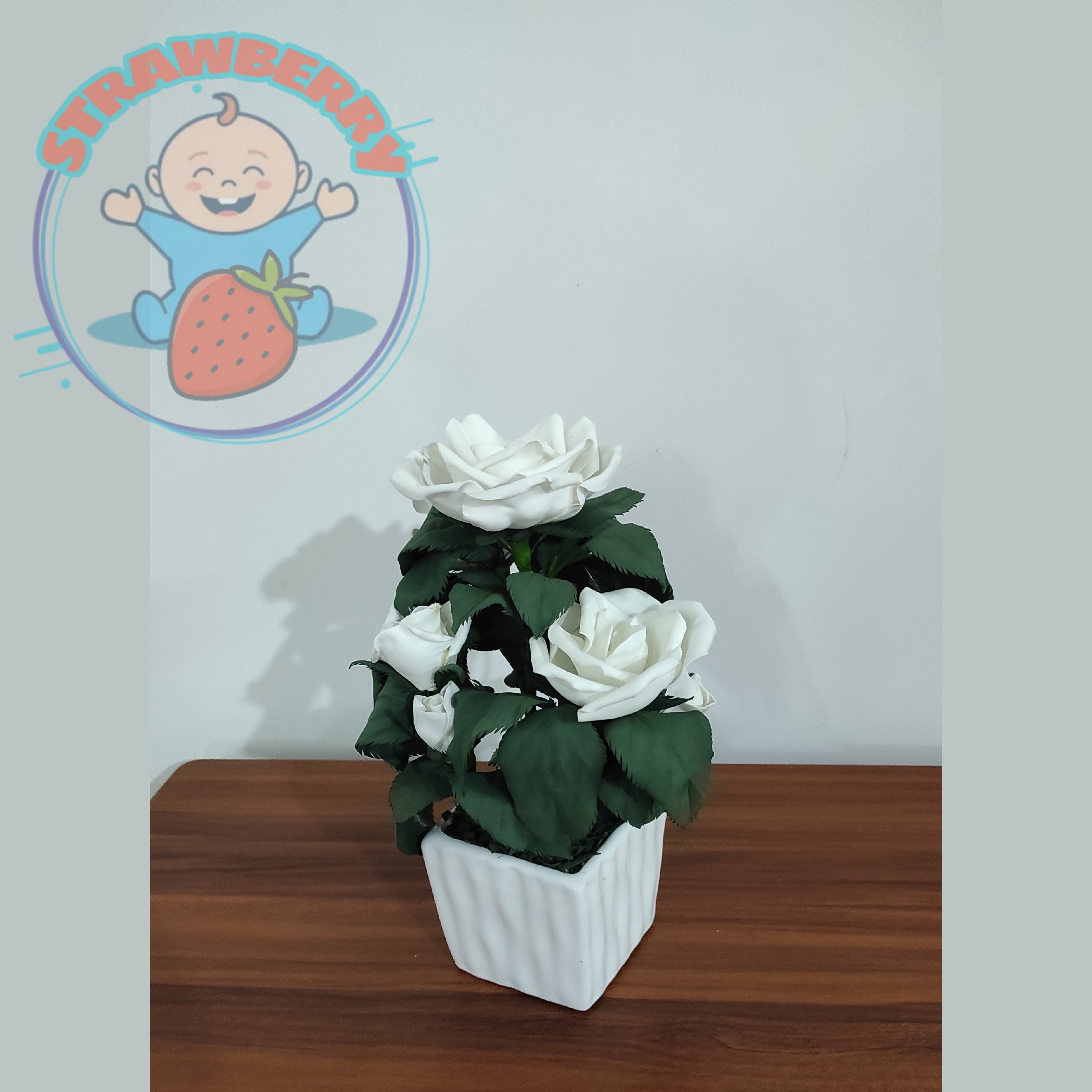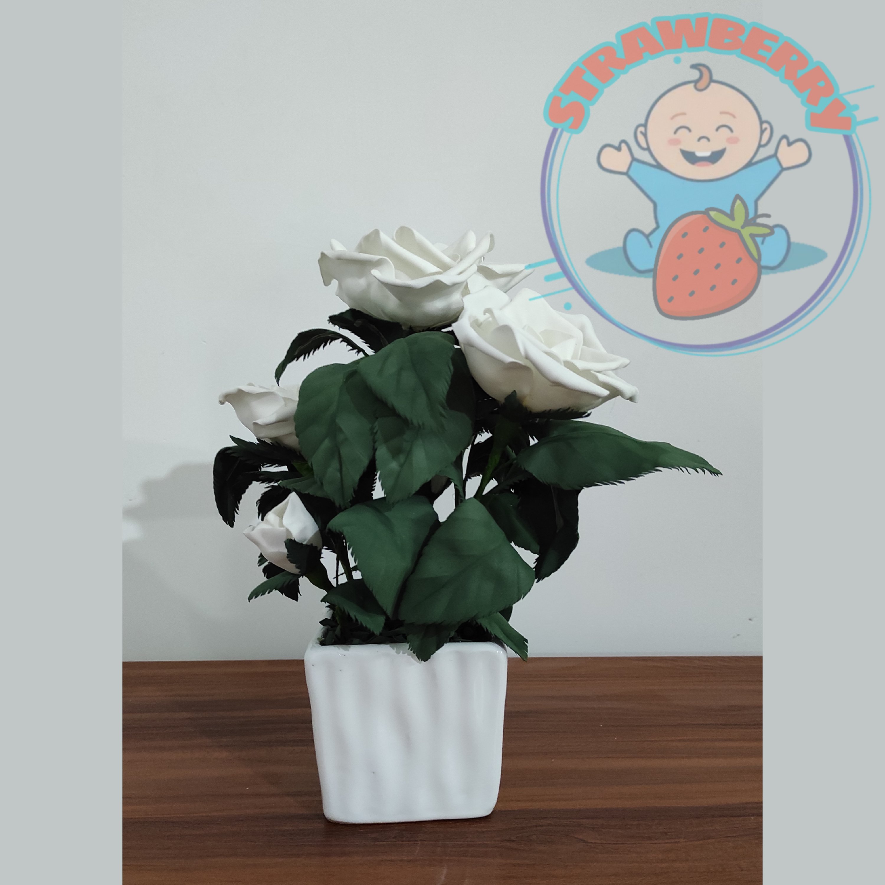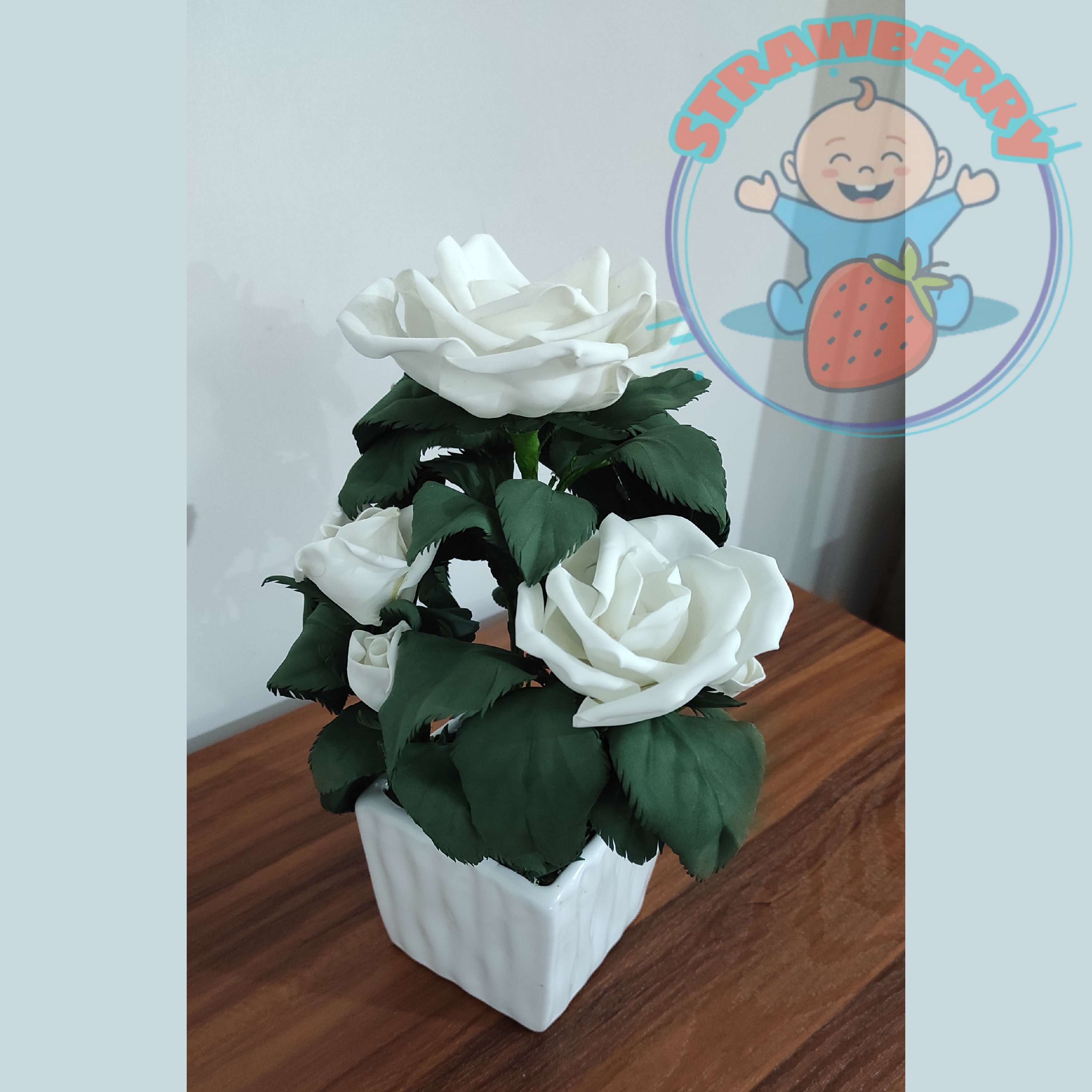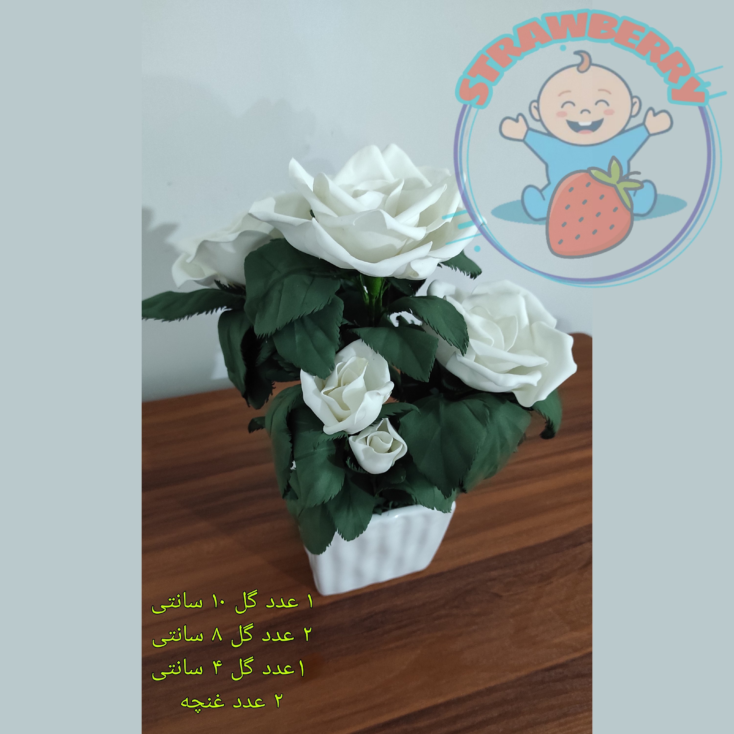 گل رز سفید مصنوعی با گلدون سفید از جنس فوم با ۶ عدد گل که شامل: یک گلدان سفید سفالی _ _۱ عدد گل رز سفید ۱۰ سانتیمتری _۲عدد گل رز سفید ۸ سانتیمتری _۱ عدد گل رز سفید ۴ سانتیمتری و ۲عدد غنچه می باشد. 🍓غرفه strawberry 🍓 🍓 توت فرنگی🍓⬇️: