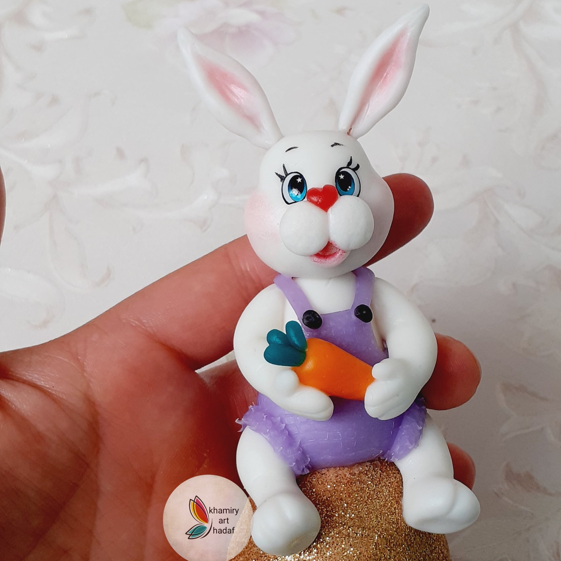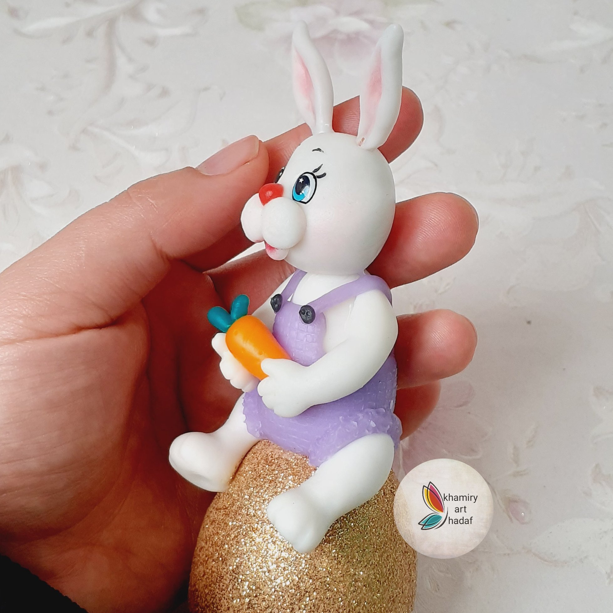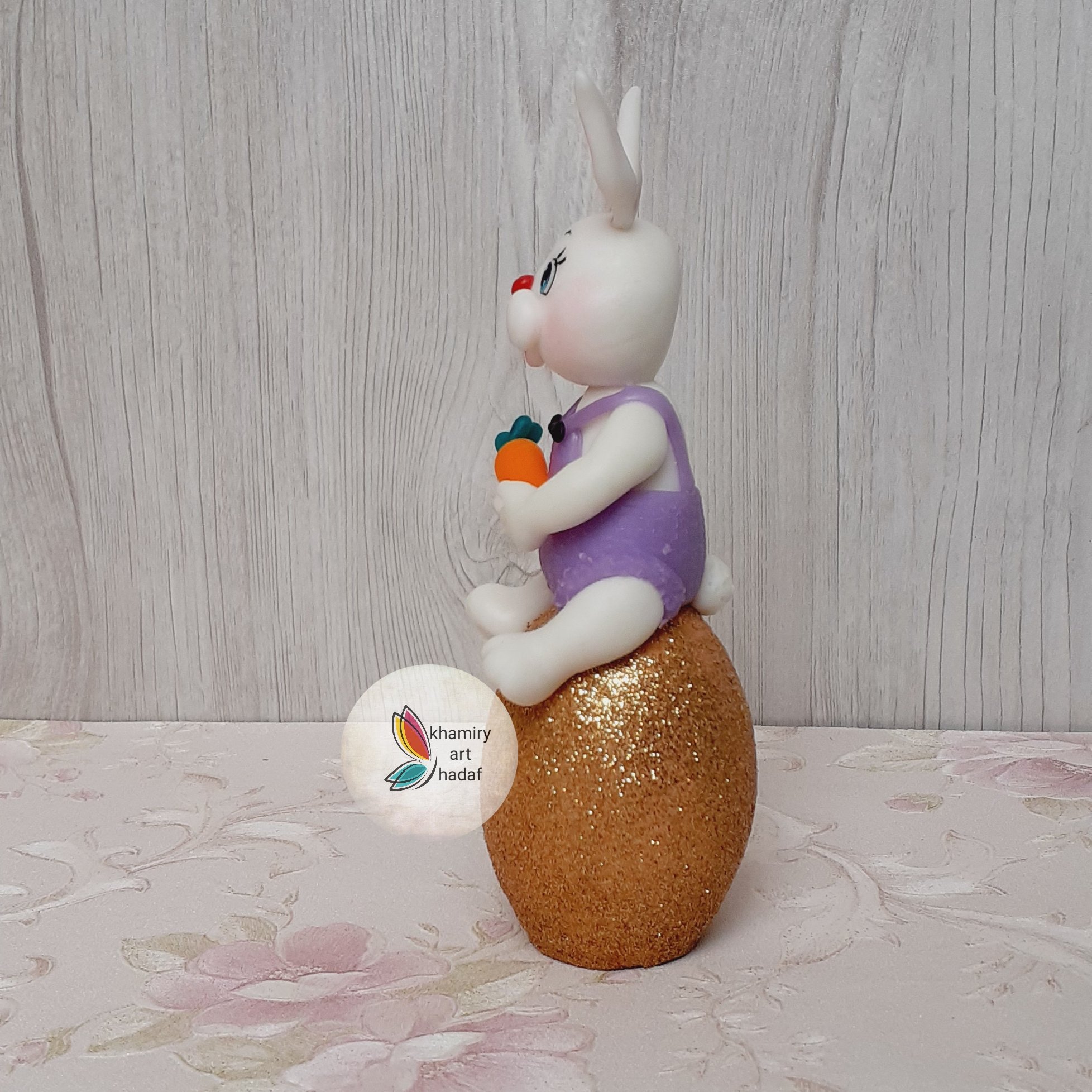 خرگوش هفتسین تخم مرغ سفالی مجسمه و عروسک خمیری خرگوش پسر نشسته روی تخم مرغ سفالی نماد1402 مبلمونسرا مدل 253809