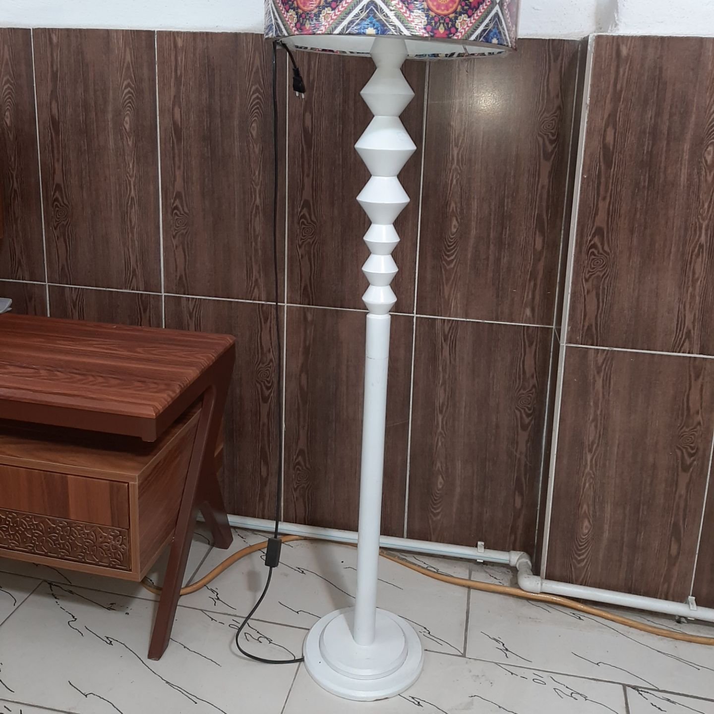 آباژور کنارسالنی تک پایه خراطی رنگ سفید مبلمونسرا مدل 232624