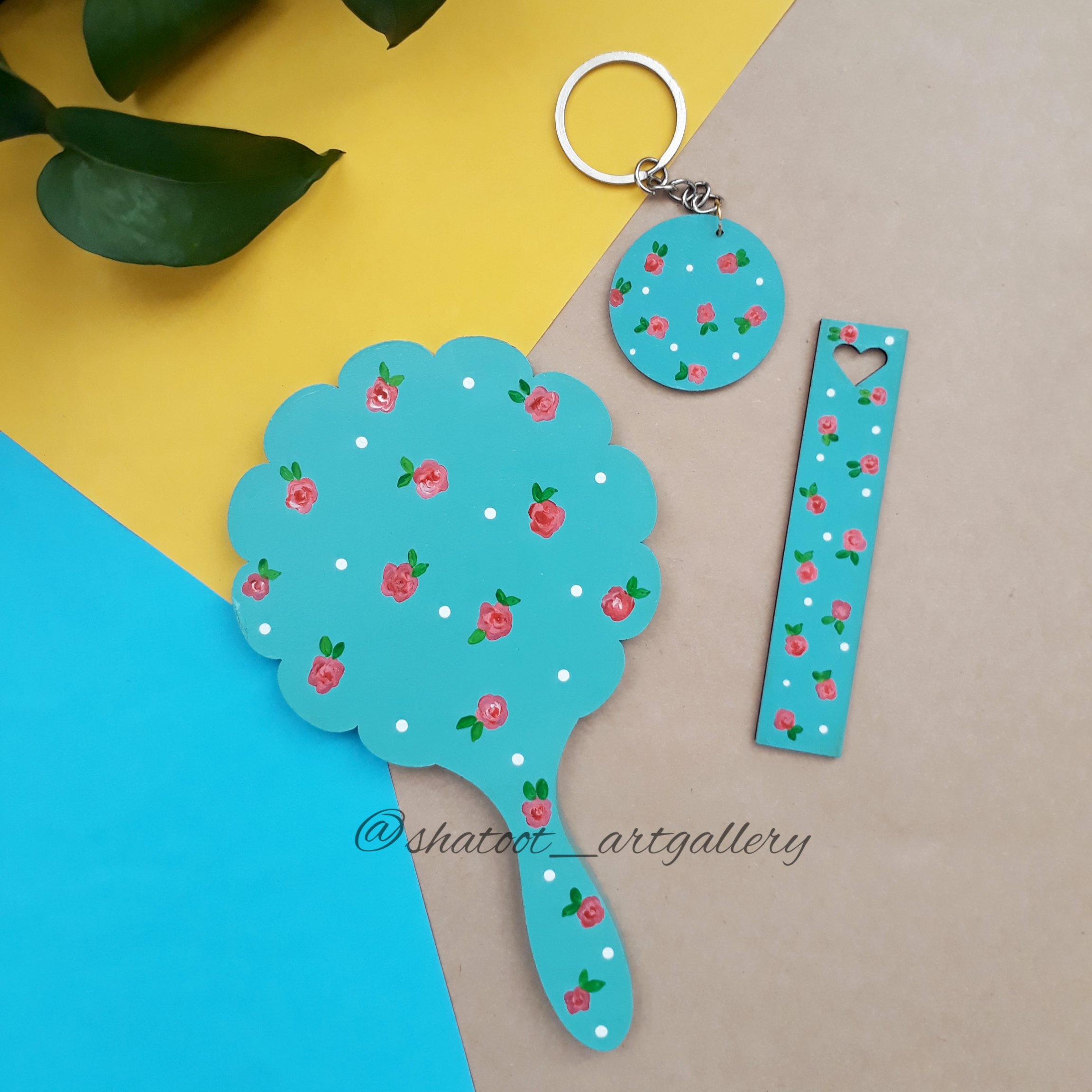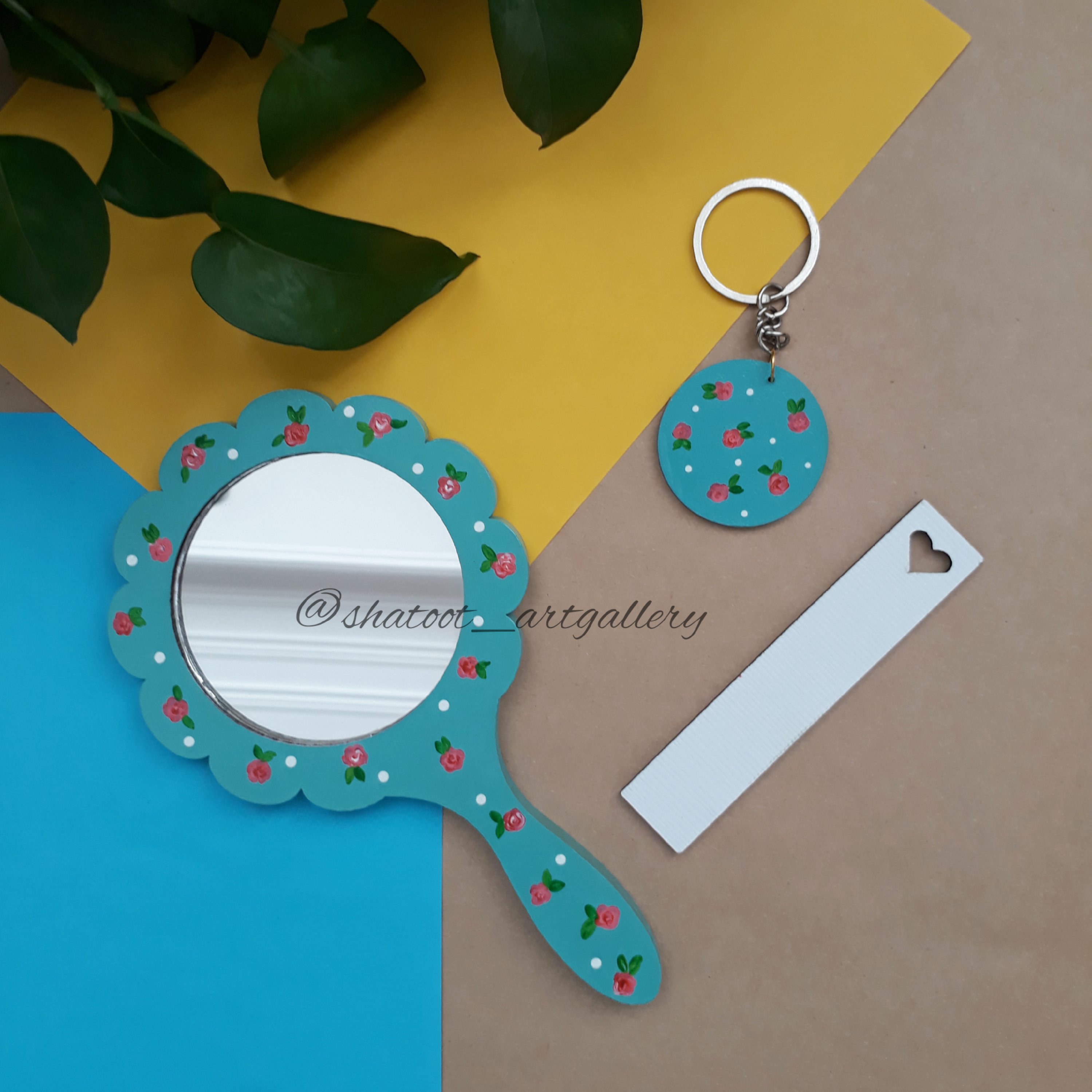 🌿ست چوبی آینه دستی و نشانگر کتاب و جاسوئیچی 🌿 رنگ آمیزی شده با رنگ اکریلیک 🌿مناسب دختران 🌿قابل سفارش با طرح و رنگ دلخواه