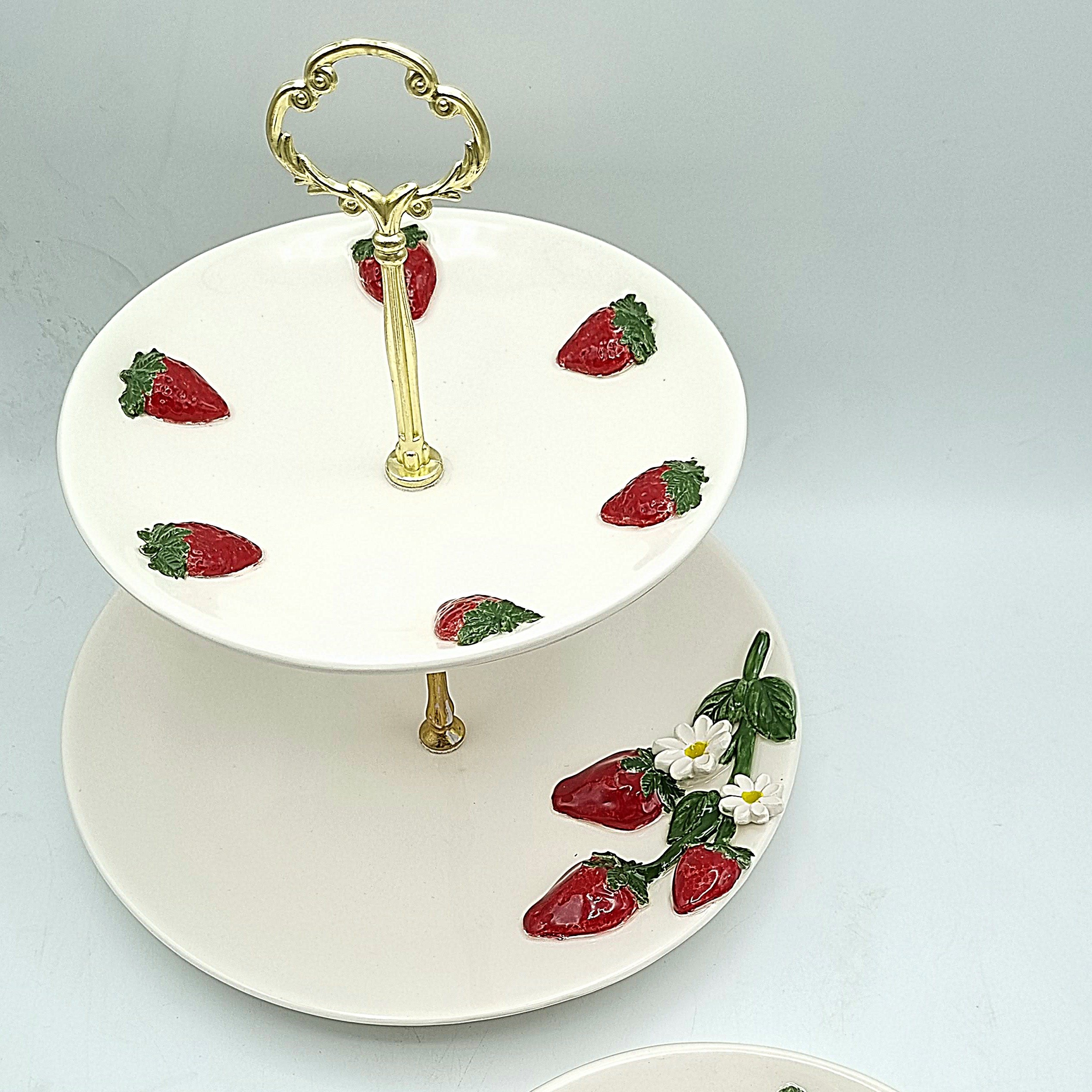 شیرینی خوری دوطبقه دستساز برجسته سرامیکی طرح توت فرنگی توانا سرام مبلمونسرا مدل 275909
