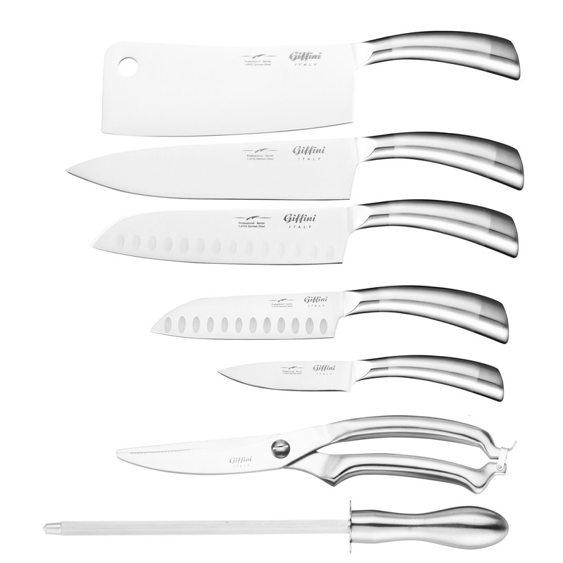 چاقو آشپزخانه ، یک ست چاقوی عالی و کارآمد است که برای استفاده در آشپزخانههای حرفهای و علاقهمندان به پختوپز طراحیشده است. این ست شامل پنج چاقو با کاربردهای مختلف است که هرکدام از آنها بسیار تیز و باکیفیت عالی هستند. تیغه چاقوهای این ست از وانادیوم باکیفیت بالا تولید و با استفاده از تکنولوژی لیزر دقیق تیز شدهاند. این تیغهها بسیار تیز و دقیق هستند و با ضریب تیزی 14، بسیار سریع و دقیق برش میدهند. همچنین، این ست شامل چاقوی دمدستی، چاقوی گوشت، چاقوی سبزی، چاقوی سرآشپز و ، که هر یک از آنها برای کاربردهای خاصی طراحیشدهاند. دسته بسیار خوشدست و بدنه یکتکه این چاقوها، به کاربر امکان استفاده راحت و ثبات در گرفتن چاقو را میدهد. همچنین، دارای وزن مناسب و عالی برای کاربرانی است که به دنبال یک چاقوی عالی و بازدهی بالا هستند. چاقوی سرآشپز این ست، کارد بزرگی است که به کاربر امکان برش سریع و نچسبیدن آن را در موقع کار با مواد غذایی مانند گوجهفرنگی میدهد. ست چاقوی آشپزخانه ، باکیفیت عالی، طراحی زیبا و بازدهی بالا، بهترین گزینه برای استفاده در آشپزخانه شما است. همچنین این ست چاقو با برند معتبر GIFFINI تولیدشده است که نشان از کیفیت بالای آن دارد