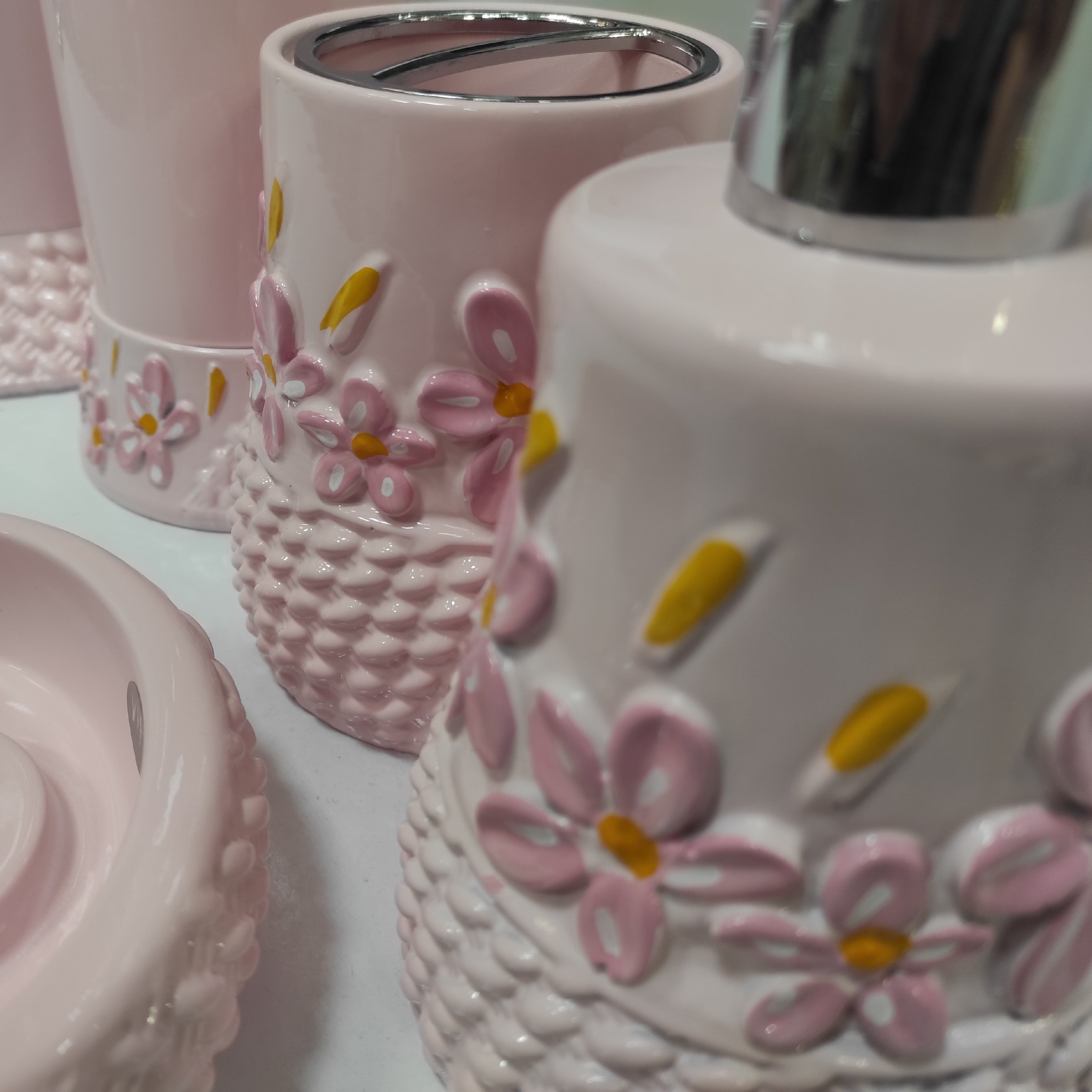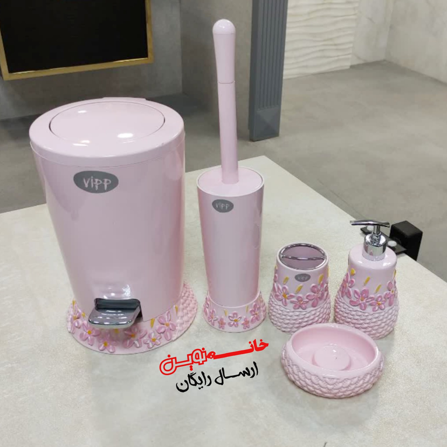 ست 5 پارچه سرویس بهداشتی ویپ مدل گل زنبق رنگ صورتی مبلمونسرا مدل 266261