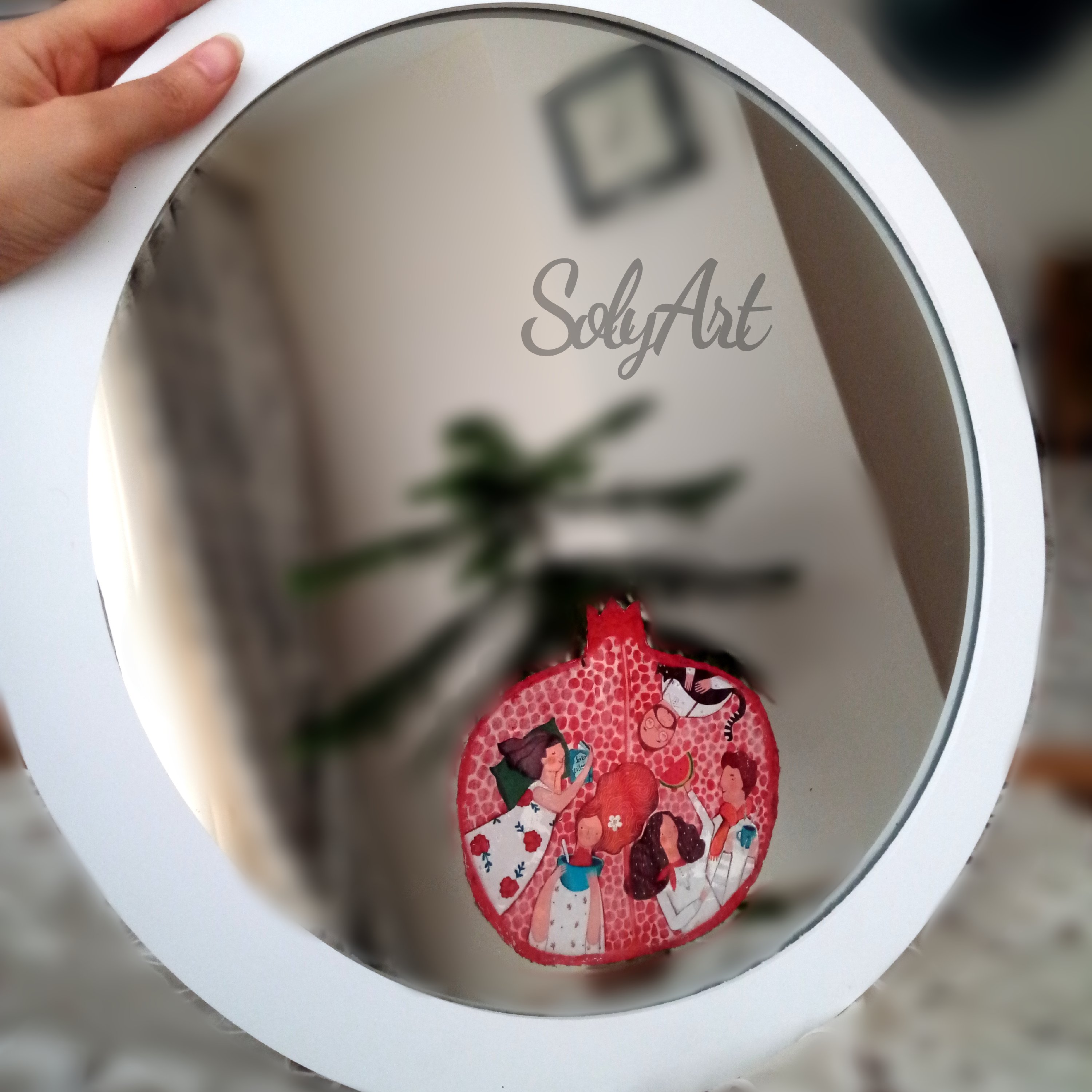 آینه آنتیک سبکی مدرن از آینه هاست که در آینه تصاویر مختلفی کار میشود، به طوری که سطح آینه کاملا شیشه است و به راحتی قابل شستشو می باشد. مناسب برای میز شب یلدا طرح فانتزی شما میتوانید از این آینه برای روی میز یا دیوار استفاده کنید سایز دایره با قاب ۴۰ سانت