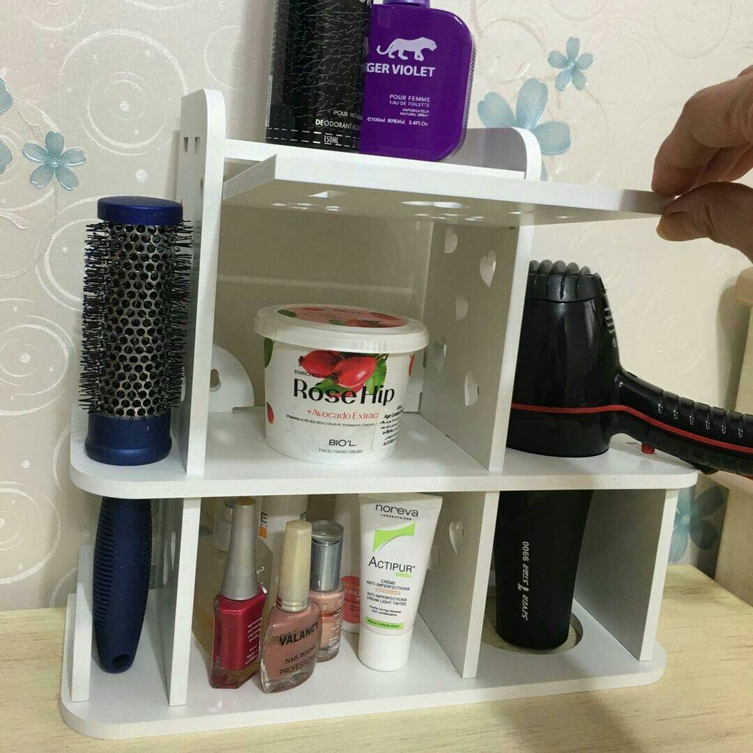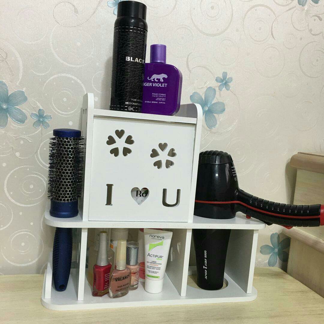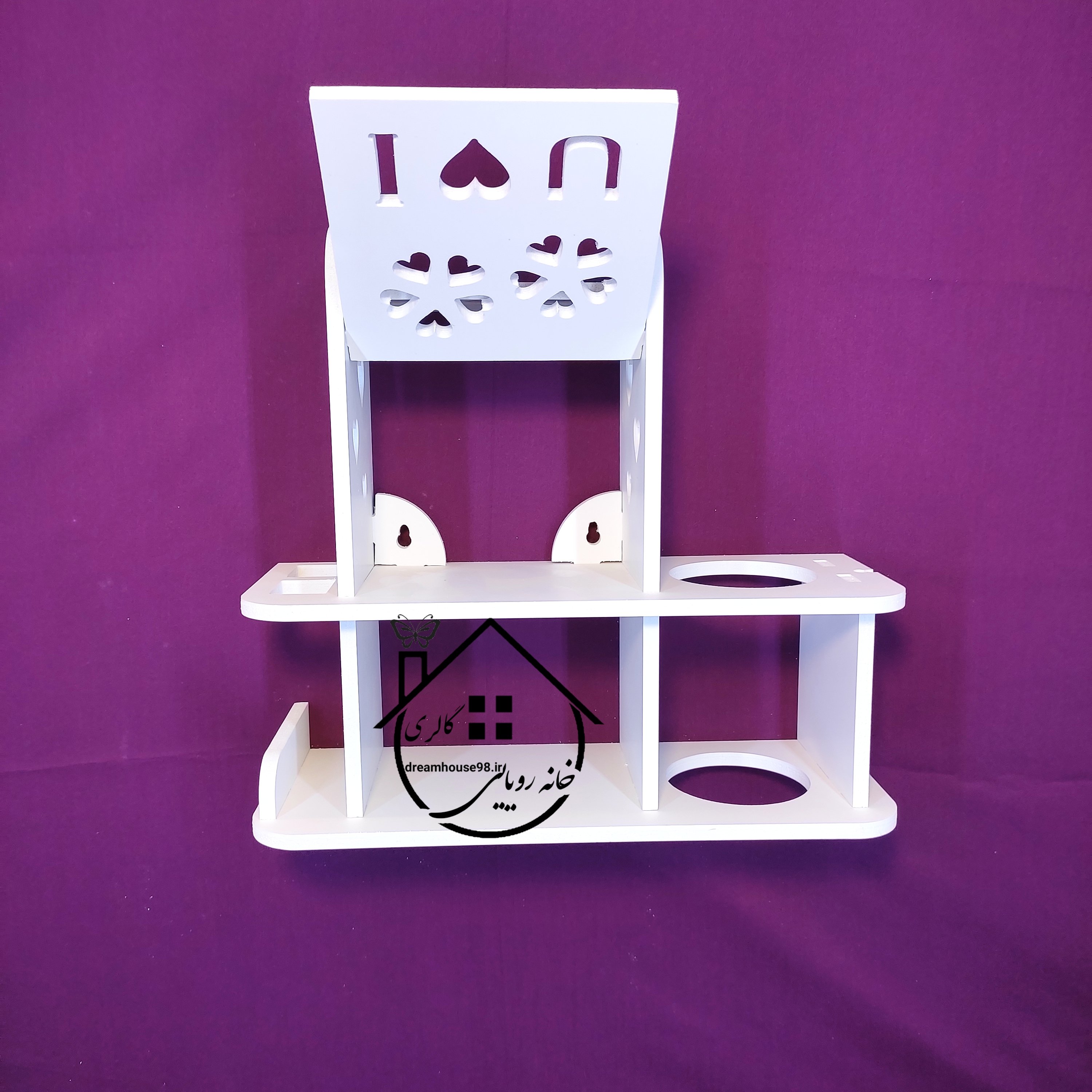 مناسب برای گذاشتن سشوار و برس و لوازم آرایشی. مزیت این کار نسبت به نمونه های مشابه در بازار اینه که اولا جنس ورقش درجه یک هست دوما دوتا قطعه سوراخ دار پشت کار تعبیه شده تا براحتی با دوتا پیچ به دیوار نصب بشه.