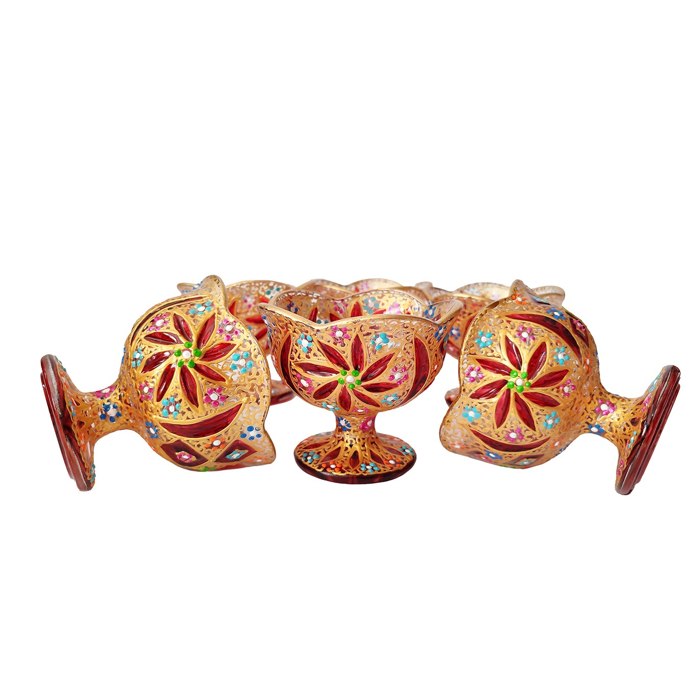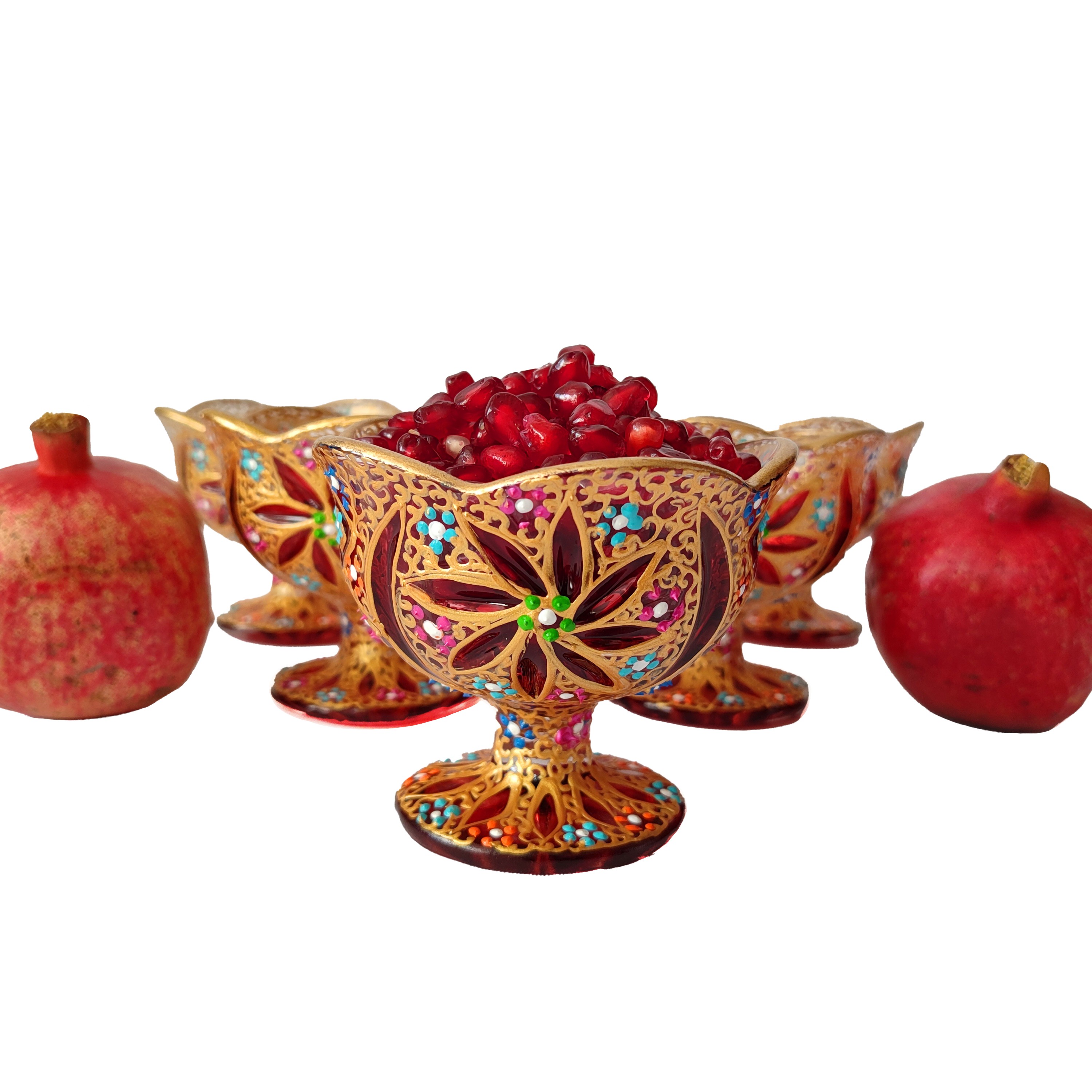 آجیل خوری بستنی خوری بلور 6 تایی قرمز مبلمونسرا مدل 266006