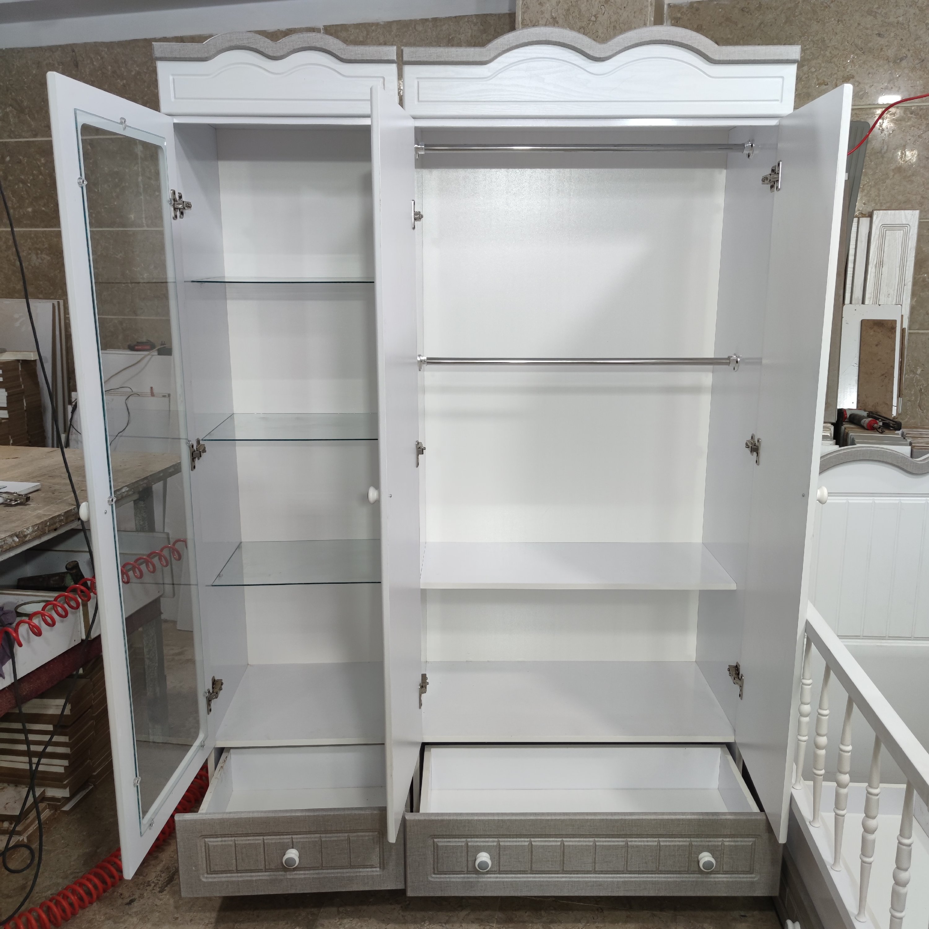 ابعاد کمد ۸۳ در ۴۵ و ارتفاع از زمین تا بالای تاج حدود ۲ متر _ ابعاد ویترین ۵۰ در ۴۵ و ارتفاع از زمین تا بالای تاج حدود ۲ متر _ ابعاد تشک خور تخت ۱۸۰ در ۸۰ و ابعاد جاگیر تخت ۱۸۵ در ۹۲