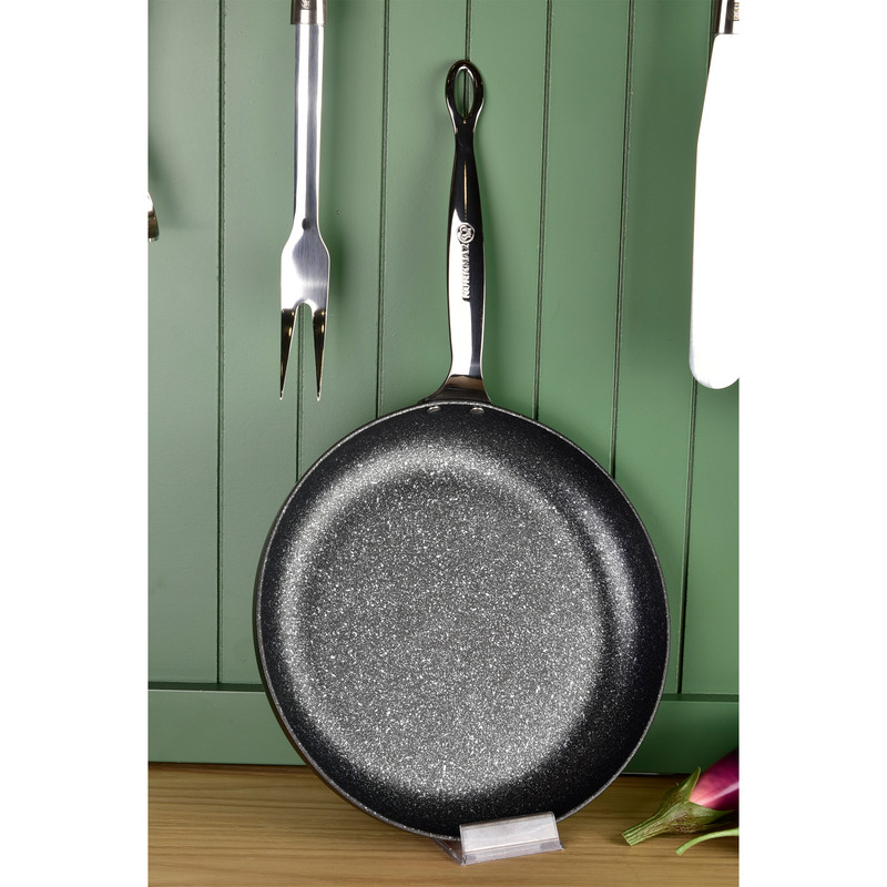 تابه با خاصیت نچسب عالی در سطوح داخلی،مقاومت و استحکام بیشتر در برابر خراشیدگی،تکنولوژی تولید سازگار با محیط زیست ،قابلیت شستشو آسان ،به لطف سیستم عملکرد پخت بالایی را حتی در حرارت کم با رسانایی حرارتی بالا ارائه می دهد. این محصول سایز 26 و گنجایش آن 2 لیتر می باشد. این غذا با استفاده از روغن کمتر نسبت به سایر ظروف غذای خوشمزه و سالم تری آماده می کند. جنس گرانیت که از مواد قابل بازیافت و کاملاً طبیعی و با فناوری سازگار با محیط زیست تولید می شود، با استفاده از روغن بسیار کمی با پوشش PTFE ضد خش و ضد خش و پوشش بیرونی سیلیکونی مقاوم در برابر دمای بالا، غذاهای خوشمزه و سالم تری درست می کند