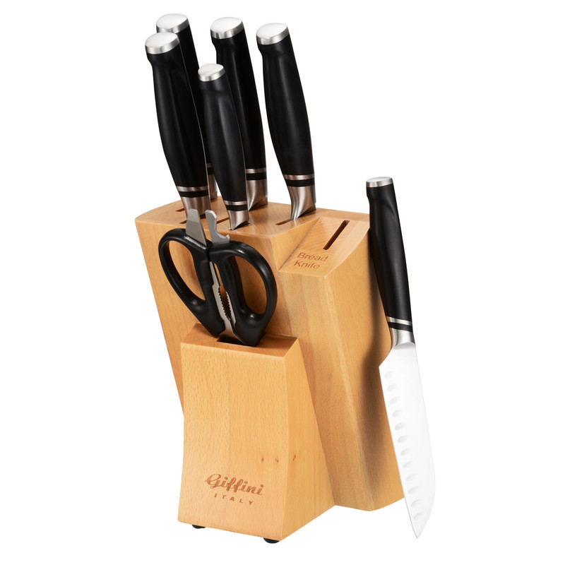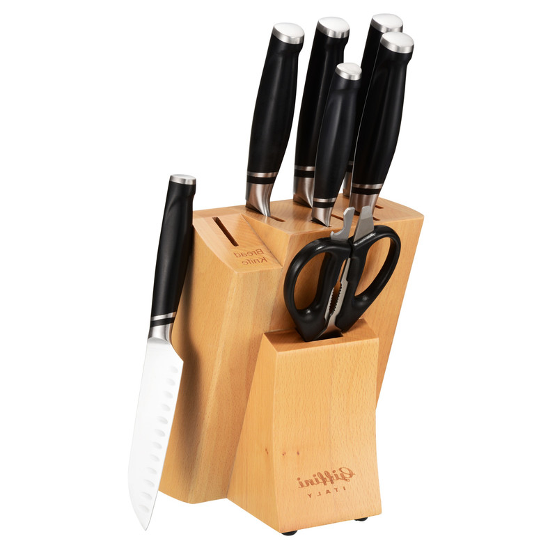 ست چاقو آشپزخانه شامل یک قیچی، یک ساطور، یک چاقوتیزکن، یک پایه نگهدارنده و سه چاقو است که هرکدام با کاربردهای متفاوتشان، هنگام آشپزی به کدبانوی خانه کمک بسزایی خواهند کرد. با استفاده از چاقوهای بزرگ میتوانید انواع گوشت و مرغ را بهسادگی تمیز کرده و بهصورت قطعات کوچکتر خرد کنید و چاقوهای کوچکتر نیز برای خرد کردن سبزیجات و... مناسب هستند. همانطور که در تصاویر دیده میشود، این مدل دارای یک پایه یا استند است که تمام ابزار را در یکجا و در کنار یکدیگر جمع میکند. با قرار دادن پایه روی یکی از کانترهای آشپزخانه، علاوه بر ایجاد ظاهری مدرن و چشمنواز در دکوراسیون محیط، بهسادگی به تمام ابزارها و چاقوهای موردنیازتان دسترسی خواهید داشت. یکی از ویژگیهای جالب این پایه، کوچک بودن ان هست که کا را برای کدبانوی منزل بسیار آسانتر خواهد شد. اگر بعد از استفادهی مداوم تیغهی چاقوها کُند شد، با تیز کنندهی موجود در این ست، قادر هستید این ابزار را دوباره تیز و بُرنده کنید. چاقوها و ابزار ست مدل W.S.M.8 از کیفیت مطلوبی برخوردار هستند و انتخابی مناسب برای تکمیل جهیزیهی نوعروسان به شمار میآیند