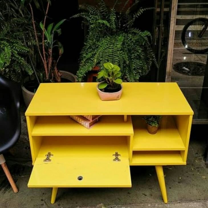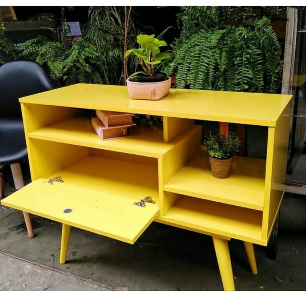 میز دکوری ام دی اف با پایه های چوبی رنگ زرد قابل تغییر به رنگ دلخواه مشتری