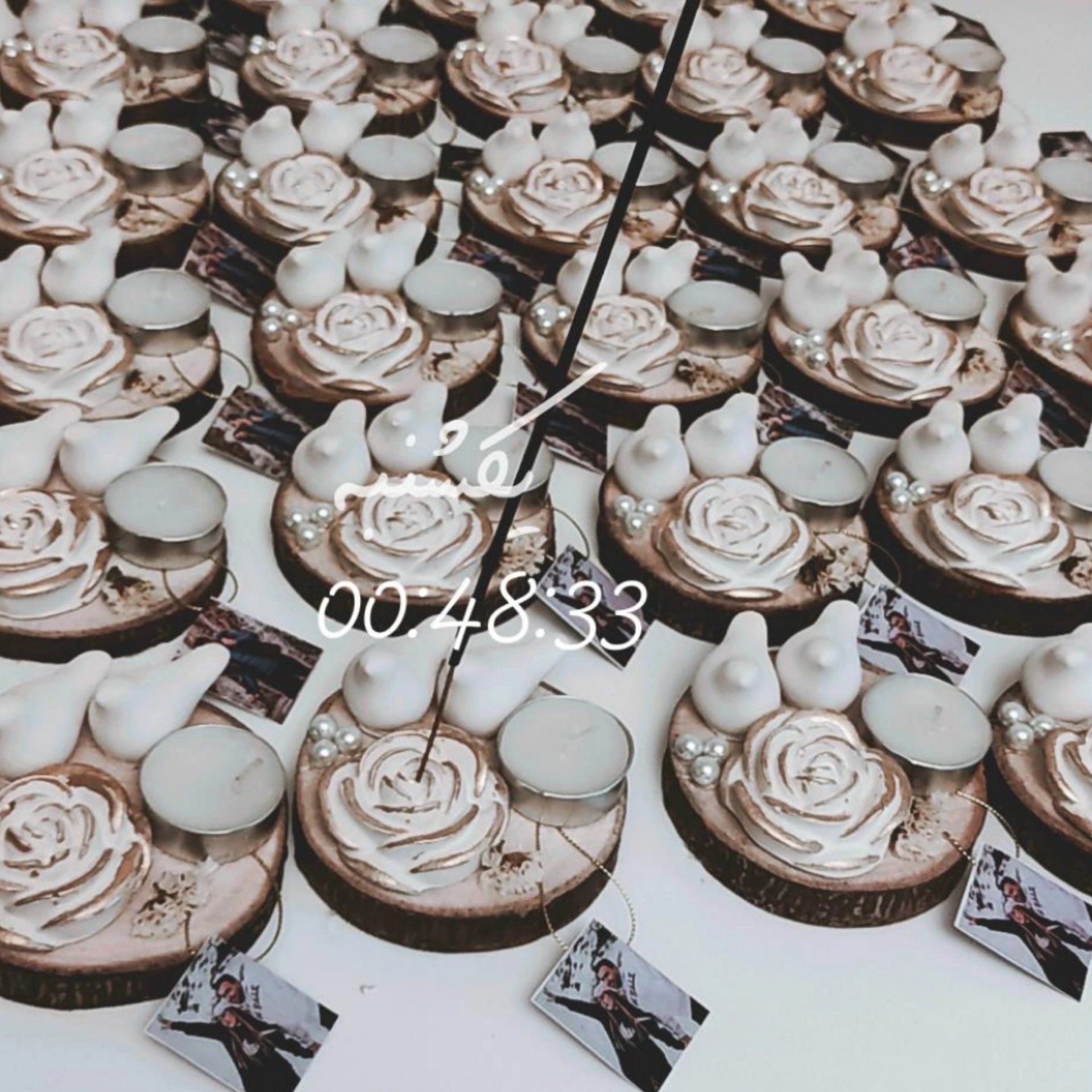 گیفت جاشمعی و جاعودی چوبی دوپرنده همراه با اتیکت دورو گیفت بسیار کاربردی که برای مهموناتون موندگار میشه😍🙏