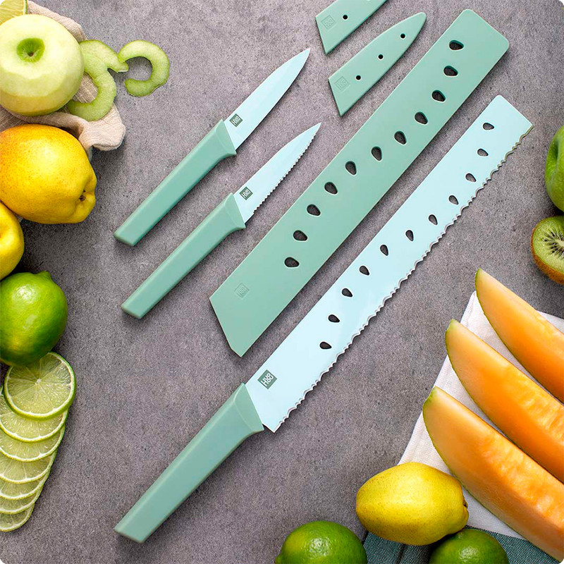 چاقوهای آشپزخانه با کیفیت، ابزار اصلی در آشپزخانه هر سرآشپزی هستند.کیت شیائومی HuoHou HU0135 شامل 3 مدل جهانی با تیغه های مختلف است. چاقوی 421 میلی متری برای میوه ها و سبزیجات بزرگ و دو چاقوی 201 میلی متری برای محصولات کوچک مناسب است. چاقوها یک فرآیند تولید طولانی را طی کردند که شامل 25 مرحله بود، به عنوان مثال: عملیات حرارتی، سخت شدن، پیرایش، شکل دهی، سندبلاست، جوشکاری، آسیاب، پختن و اعمال لایه های محافظ.فولاد چاقو با یک لایه ریزساختار و نانوساختار پوشیده شده است. آنها با هم یک "اثر نیلوفر آبی" را تشکیل می دهند که به تیغه خاصیت خود تمیز شوندگی منحصر به فردی می دهد و از تجمع مواد غذایی یا زباله های آب جلوگیری می کند. حتی اگر کثیفی بسیار سنگین باشد، چاقو را می توان به راحتی تمیز کرد و به شرایط عالی رسید. لایه بژ یک نانو پوشش سرامیکی ویژه است که خاصیت نچسب تیغه را می دهد. این توسط شرکت پیشرو جهانی SGS آزمایش شده است و به طور کامل با استانداردهای ایمنی مواد غذایی مطابقت دارد.برای ساخت چاقو، یک فولاد ضد زنگ مولیبدن وانادیوم غنی از کروم انتخاب شد. این خود را به خوبی ثابت کرده است، زیرا دارای مقاومت در برابر سایش، شکل پذیری و مقاومت در برابر خوردگی است. و به ل محتوای کربن بالا، تیغه مستعد خم شدن یا بریدگی نیست.