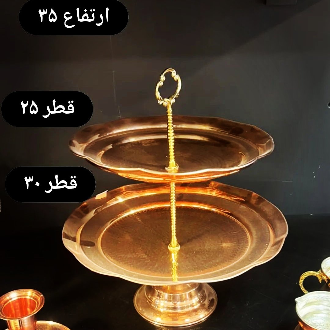شیرینی خوری مسی سایز بزرگ دو طبقه ،ارتفاع 35 قطر طبقه اول 30 قطر طبقه دوم 25 مبلمونسرا مدل 274887