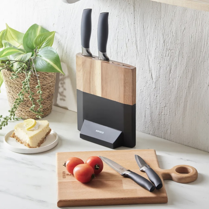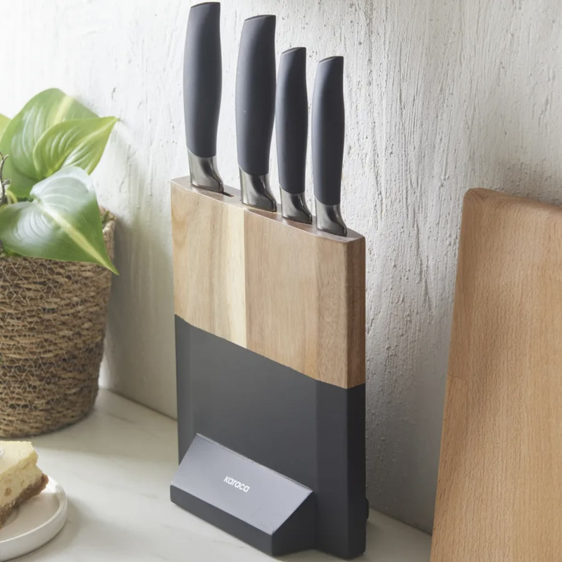 سرآشپزهای حرفه ای برای خوشمزه ترین وعده های غذایی دنبال چاقوهای تیز، نومیک و کاربردی هستند.ست چاقو 5 تکه Karaca Celesse دارای 5 تیغه است که هر کدام زیباتر و تیزتر از دیگری هستند، از جمله چاقوهای پوست کن، برش، برش و سرآشپز. این ست چاقو که با سهولت و کاربردی بودن خود متمایز است با دسته نومیک و استفاده راحت یکی از محبوب ترین محصولات آشپزخانه شما خواهد بود. چاقوها با پایه چوبی مخصوص و نماد قدرت به رنگ مشکی ال می شوند تا عمر آنها را افزایش داده و نگهداری آنها را آسان کند. شستشوی دستی محصولات توصیه می شود.