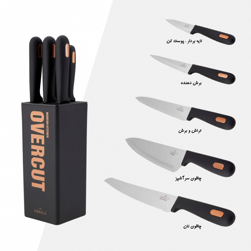 سرویس چاقو آشپزخانه 6 پارچه کاراجا مدل OVERCUT مبلمونسرا مدل 206197