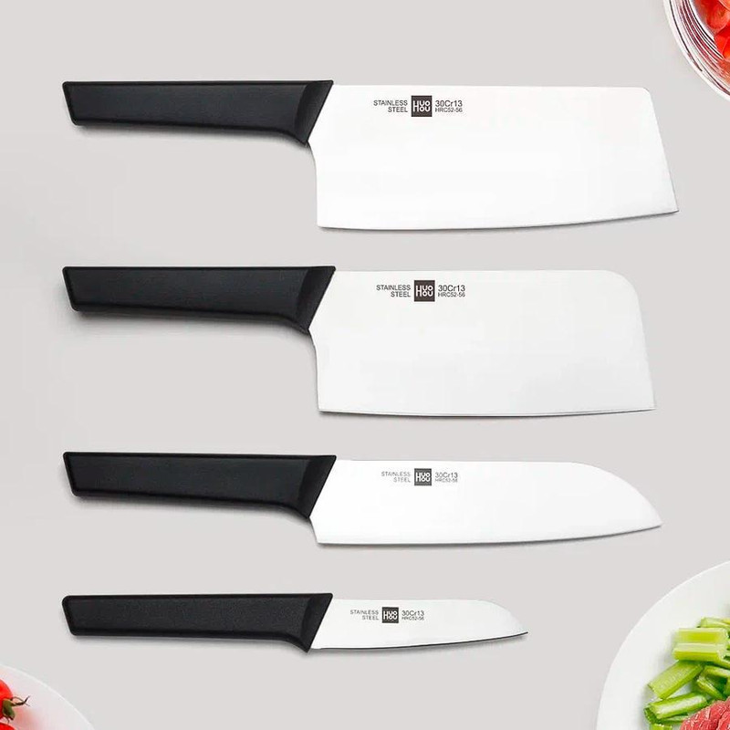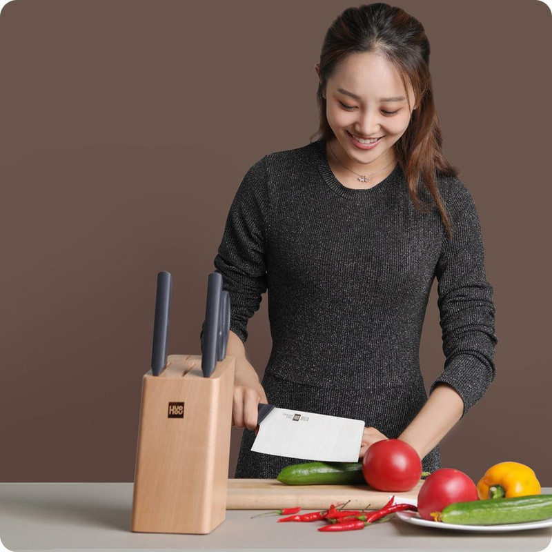 ست چاقوی فولادی آشپزخانه هوهاو محصول برند معتبر شیائومی تولید شده از فولاد فوق مقاوم و مستحکم ساخته شده است.این محصول دارای یک پایه چوبی لوکس میباشد. در این مجموعه چاقوهایی برای انواع محصولات از گوشت و ماهی گرفته تا میوه و سبزی وجود دارد. با کمک آنها می توانید به سرعت سالاد سبزیجات بپزید یا هر مدل غذا را تهیه کنید.این مجموعه چاقو فوق آلاده و لوکس شامل 1 عدد ساطور یک عدد چاقوی برش یک عدد جاقوی سانتوکو یک چاقوی میوه وسبزیجات و یک عدد قیچی آشپزی میباشد .