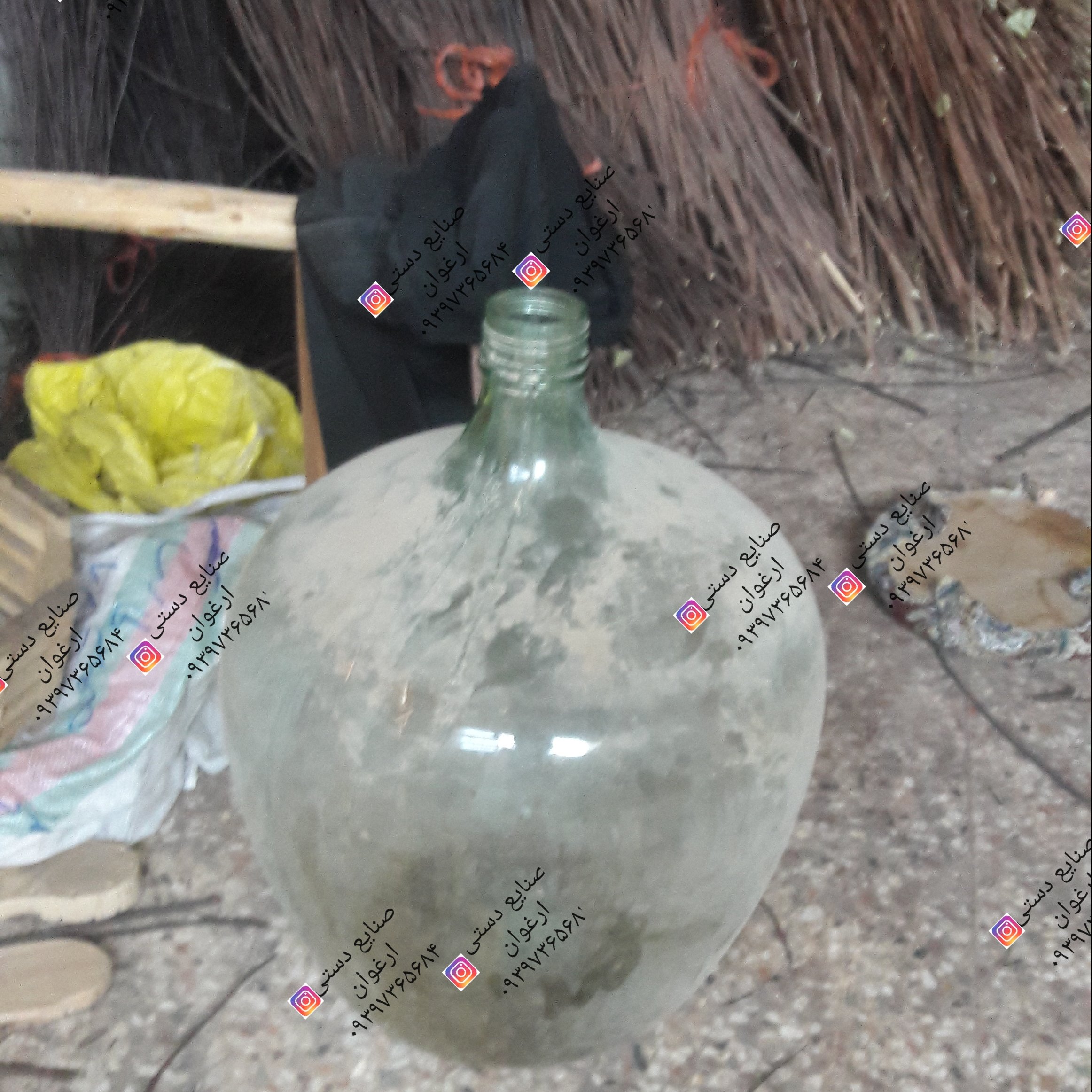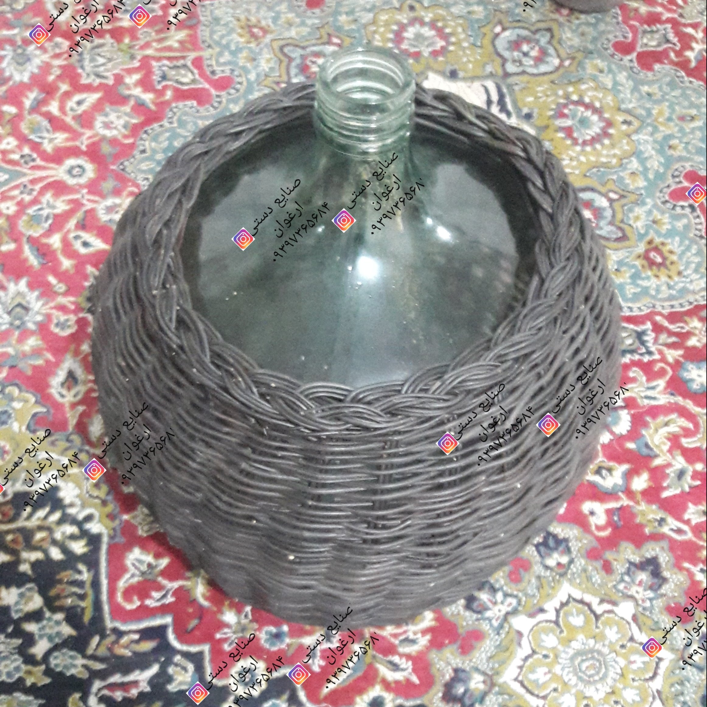 بافت دور شیشه در سایزهای مختلف در قدیم برای اینکه شیشها نشکنن و مواد داخل اون از نور مستقیم در امان باشه دور اونها رو میبافتن برای ترشی انگور و سایر ترشیها استفاده میشده