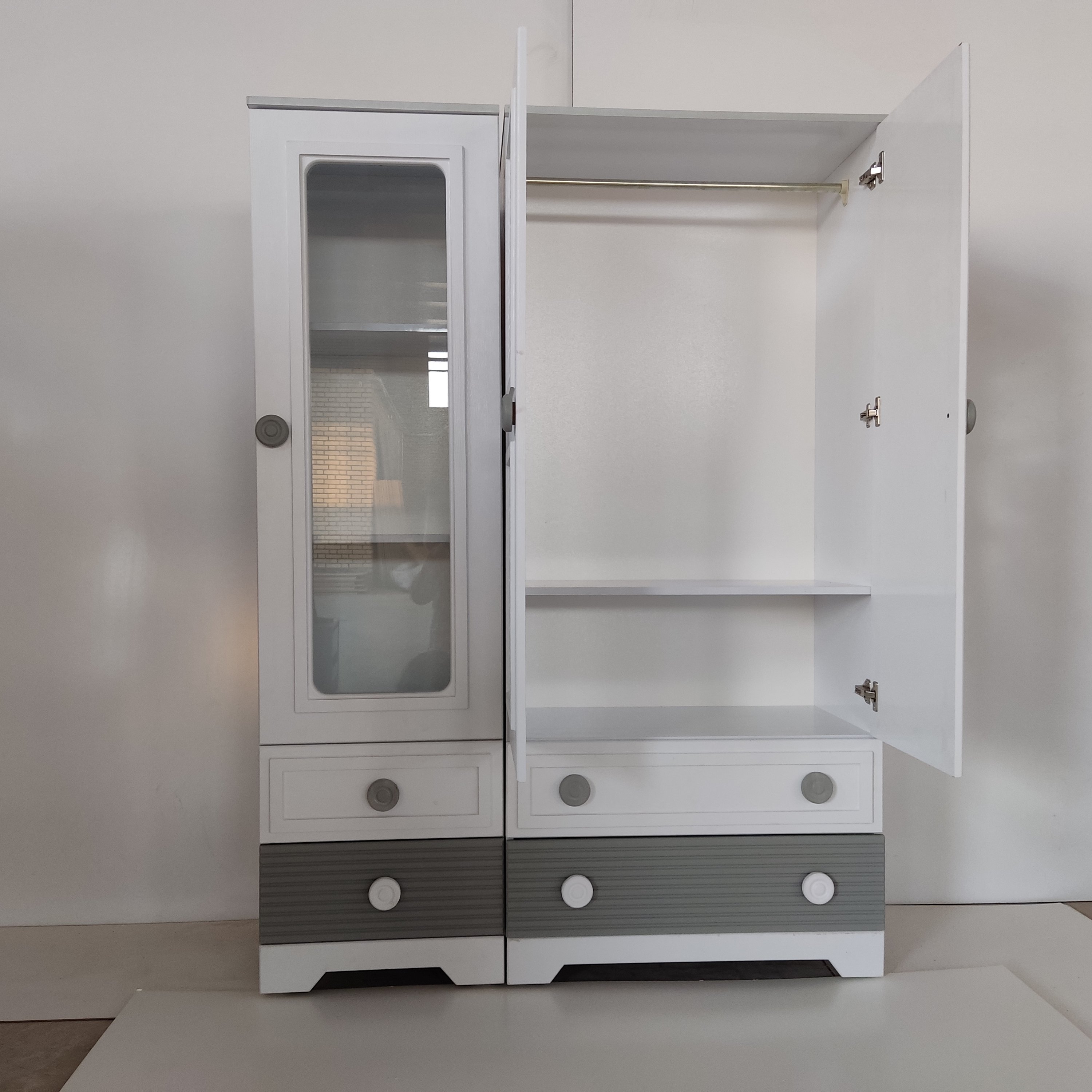 عرض کمد جالباسی 80 سانتیمتر و عرض کمد ویترین 50 سانتیمتر و عمق بیرونی کمد42 سانتیمتر