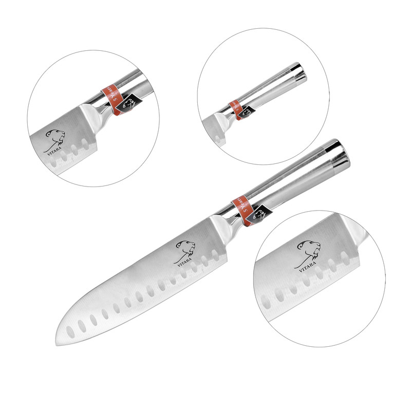 چاقو یکی از ابزارهای بسیار ضروری در آشپزخانه می باشد چرا که تکه کردن و اسلاید کردن مواد یکی از کارهای اصلی در پخت غذا محسوب می شود که ملزم استفاده از چاقو می باشد. سرویس چاقو 8 پارچه Vitara مدل BDL3268 از مدل های بسیار زیبا و در عین حال پر کاربرد در آشپزخانه است که مخاطبان می توانند از هر کدام از ابزارهای آن نهایت استفاده را ببرند. این سرویس چاقو یک پکیج کامل است که دارای انواع چاقو در کابرد های مختلف.قیچی آشپزخانه.چاقو تیز کن و استند نگهداره میباشد که هر کدام به نوعی در کمک کردن به مخاطب در کارهای آشپزخانه تاثیر می گذارند. طراحی ظاهری این محصول از جمله ویژگی های آن است که نمی توان آن را نادیده گرفت به طوری که کاربر می تواند آن را در هر جای آشپزخانه قرار دهد و جذابیت خاصی را به محیط خود ببخشد.همچنین این محصول از استیل ضد زنگ 18/10 ساخته شده است که مادگاری بسیار بالایی دارد