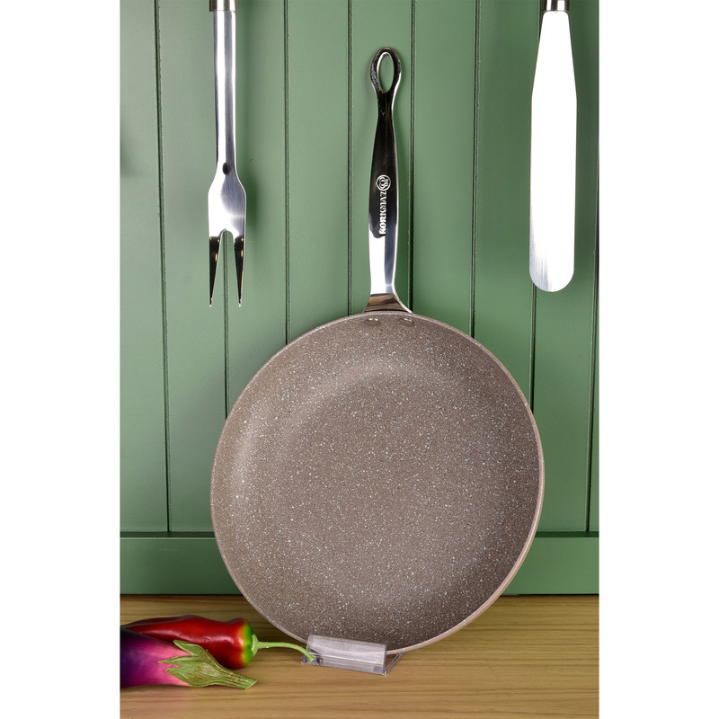 تابه با خاصیت نچسب عالی در سطوح داخلی،مقاومت و استحکام بیشتر در برابر خراشیدگی،تکنولوژی تولید سازگار با محیط زیست ،قابلیت شستشو آسان ،به لطف سیستم عملکرد پخت بالایی را حتی در حرارت کم با رسانایی حرارتی بالا ارائه می دهد. این محصول سایز 26 و گنجایش آن 2 لیتر می باشد. این غذا با استفاده از روغن کمتر نسبت به سایر ظروف غذای خوشمزه و سالم تری آماده می کند. جنس گرانیت که از مواد قابل بازیافت و کاملاً طبیعی و با فناوری سازگار با محیط زیست تولید می شود، با استفاده از روغن بسیار کمی با پوشش PTFE ضد خش و ضد خش و پوشش بیرونی سیلیکونی مقاوم در برابر دمای بالا، غذاهای خوشمزه و سالم تری درست می کند