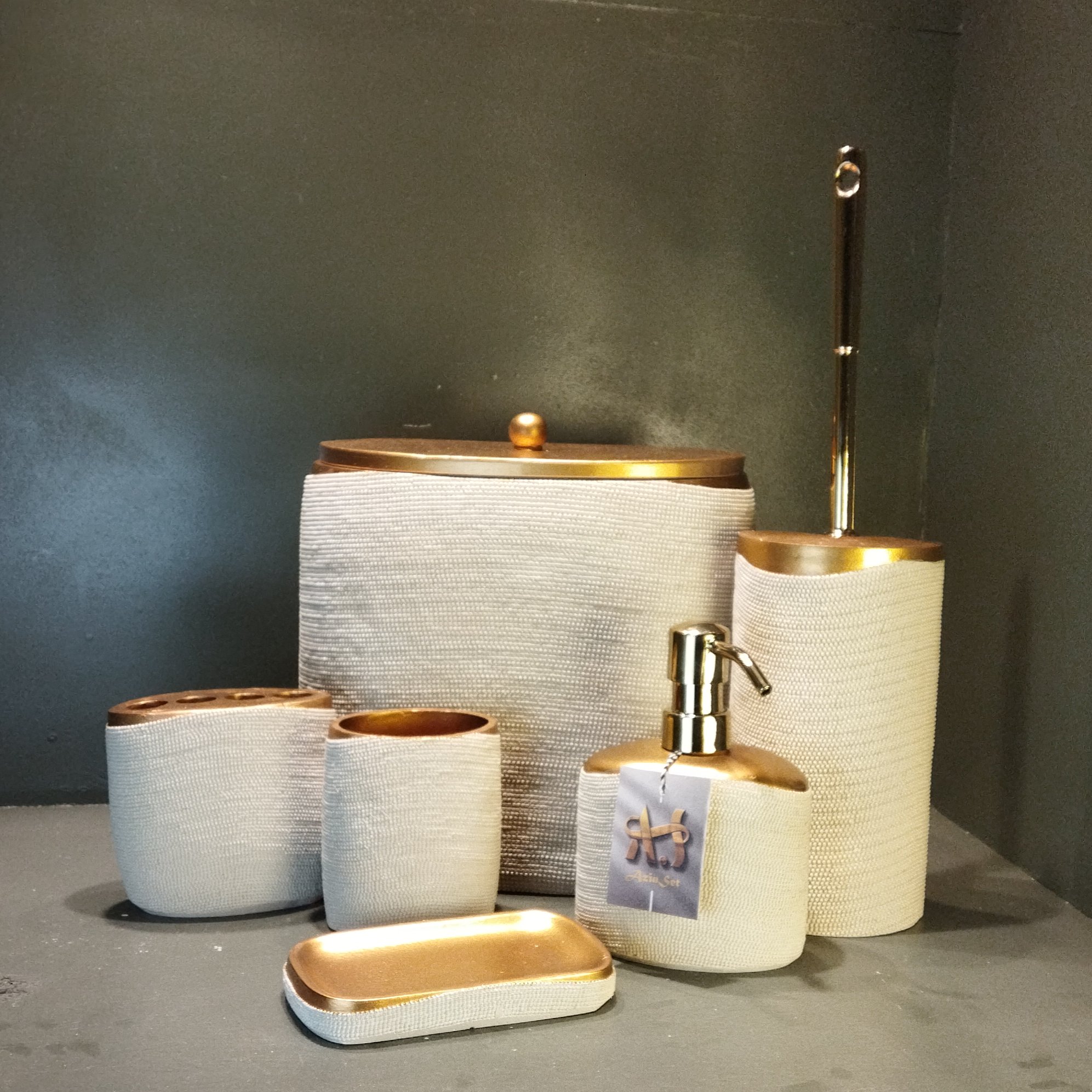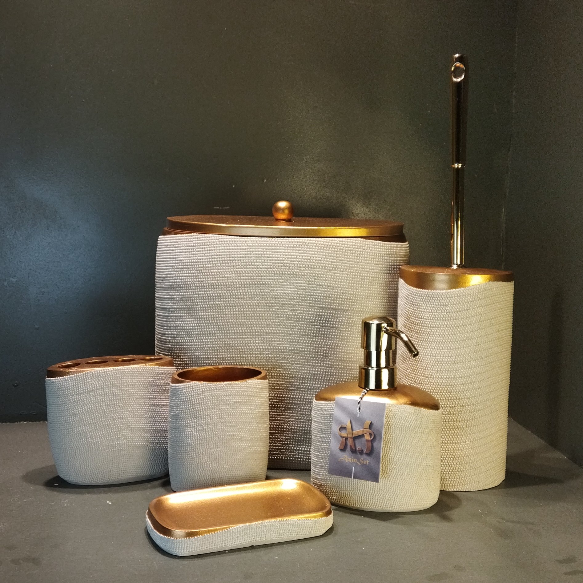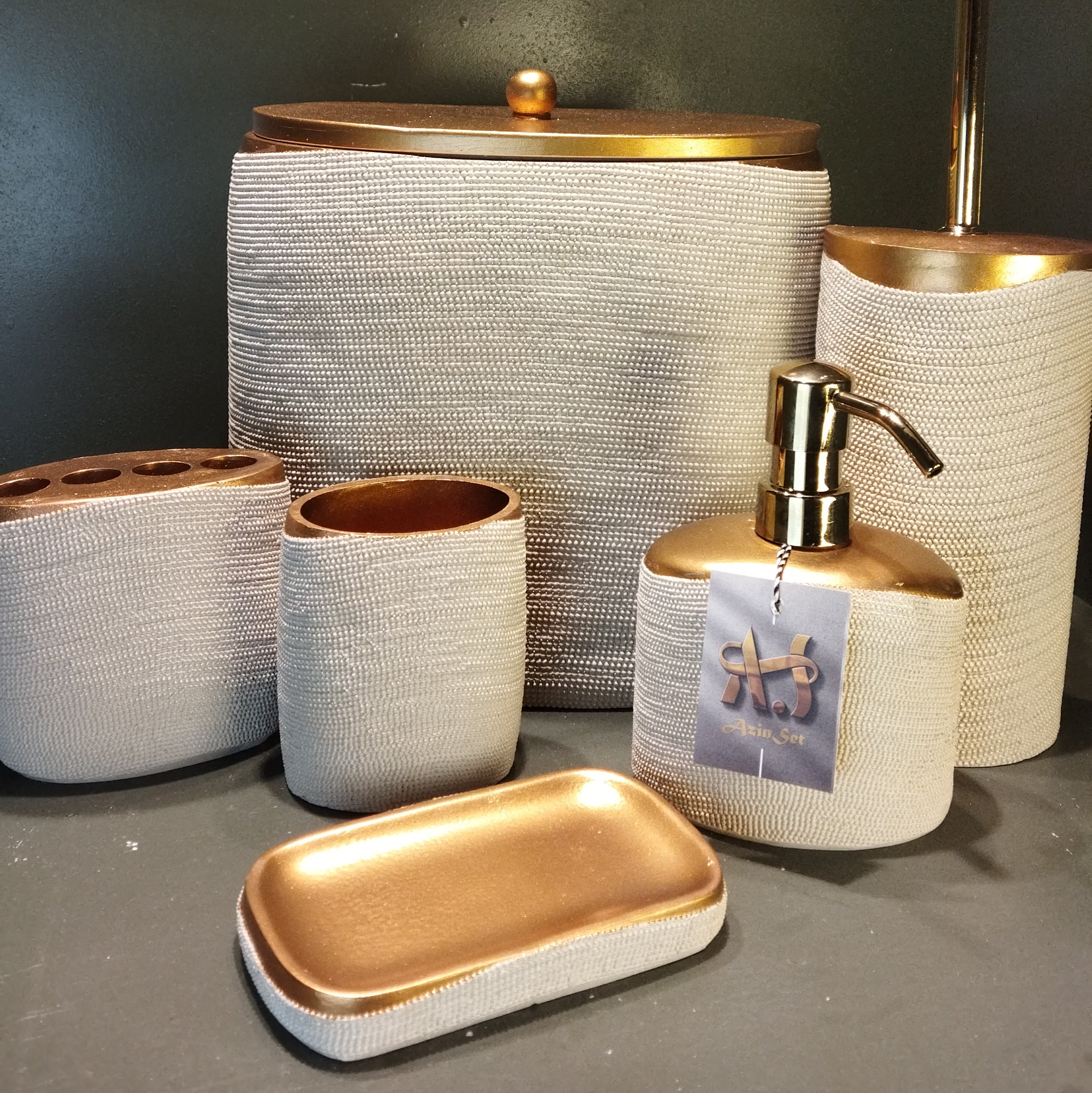 لوازم سرویس بهداشتی مدل زاپ برند آذین ست - رنگ خاص کرم با طلایی - مخصوص سرویس بهداشتی و دستشویی و جهیزیه مبلمونسرا مدل 266298