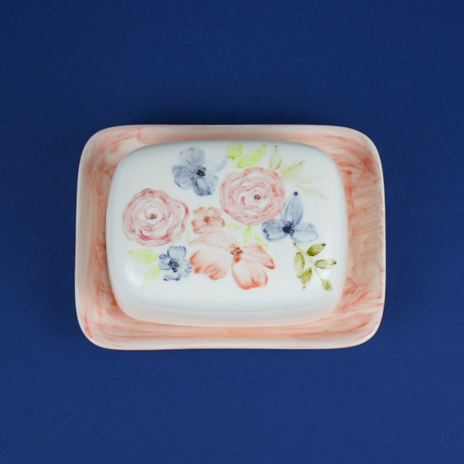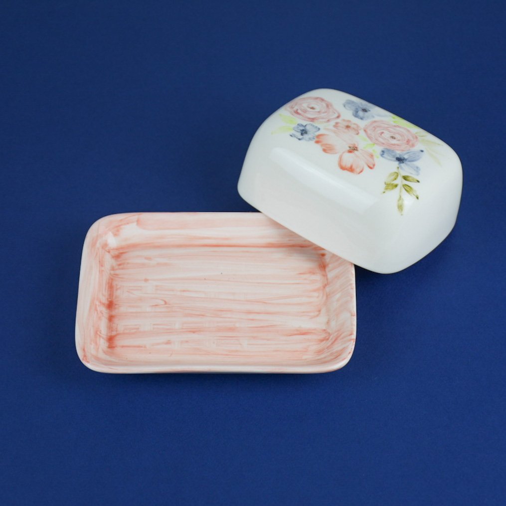 ظرف سرامیکی کره و پنیر خوری دستساز طرح رز مبلمونسرا مدل 287899