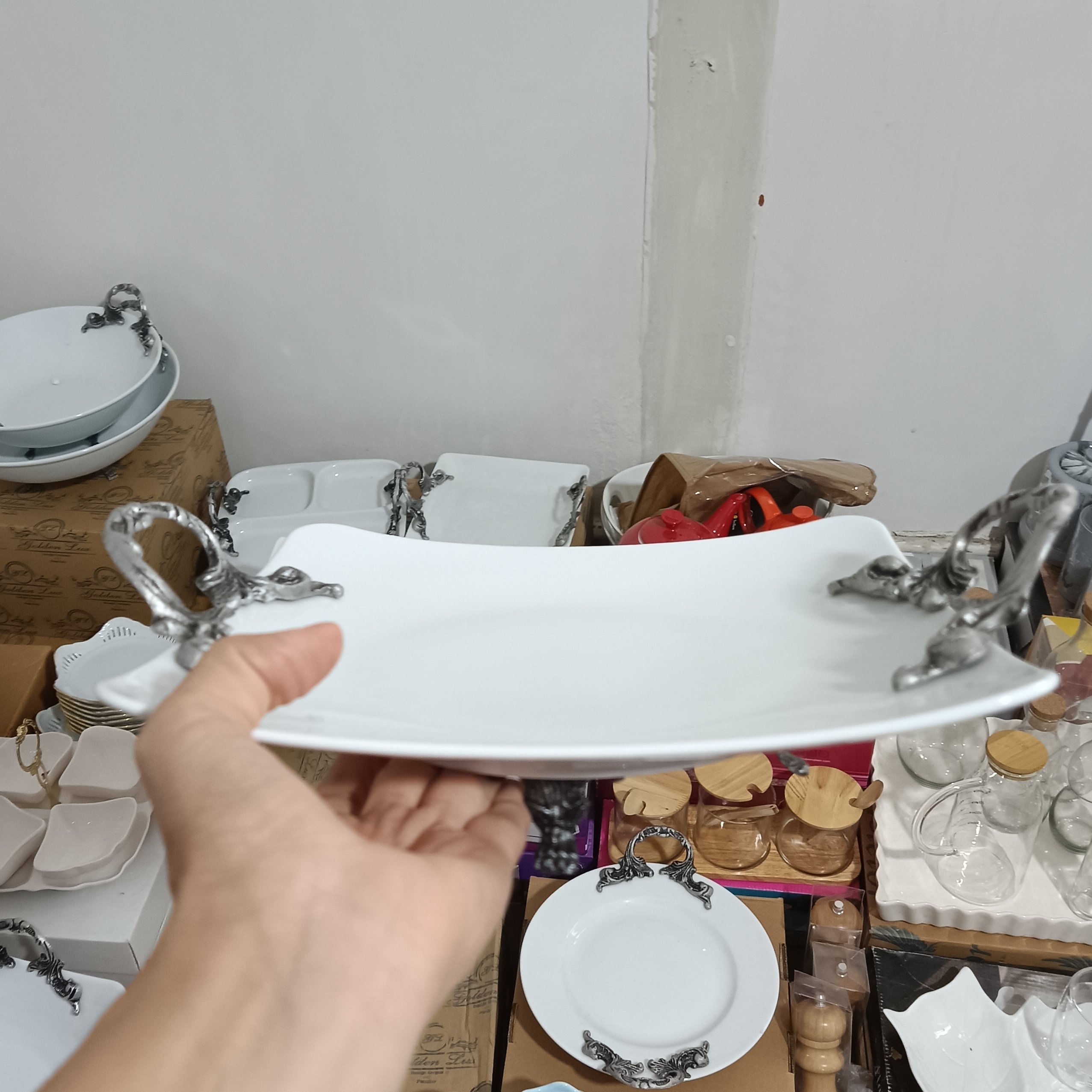 تخت میباشد مناسب انواع شیرینی ها دسته و پایه از جنس پیوتر جهت پذیرایی در مهمانی ها
