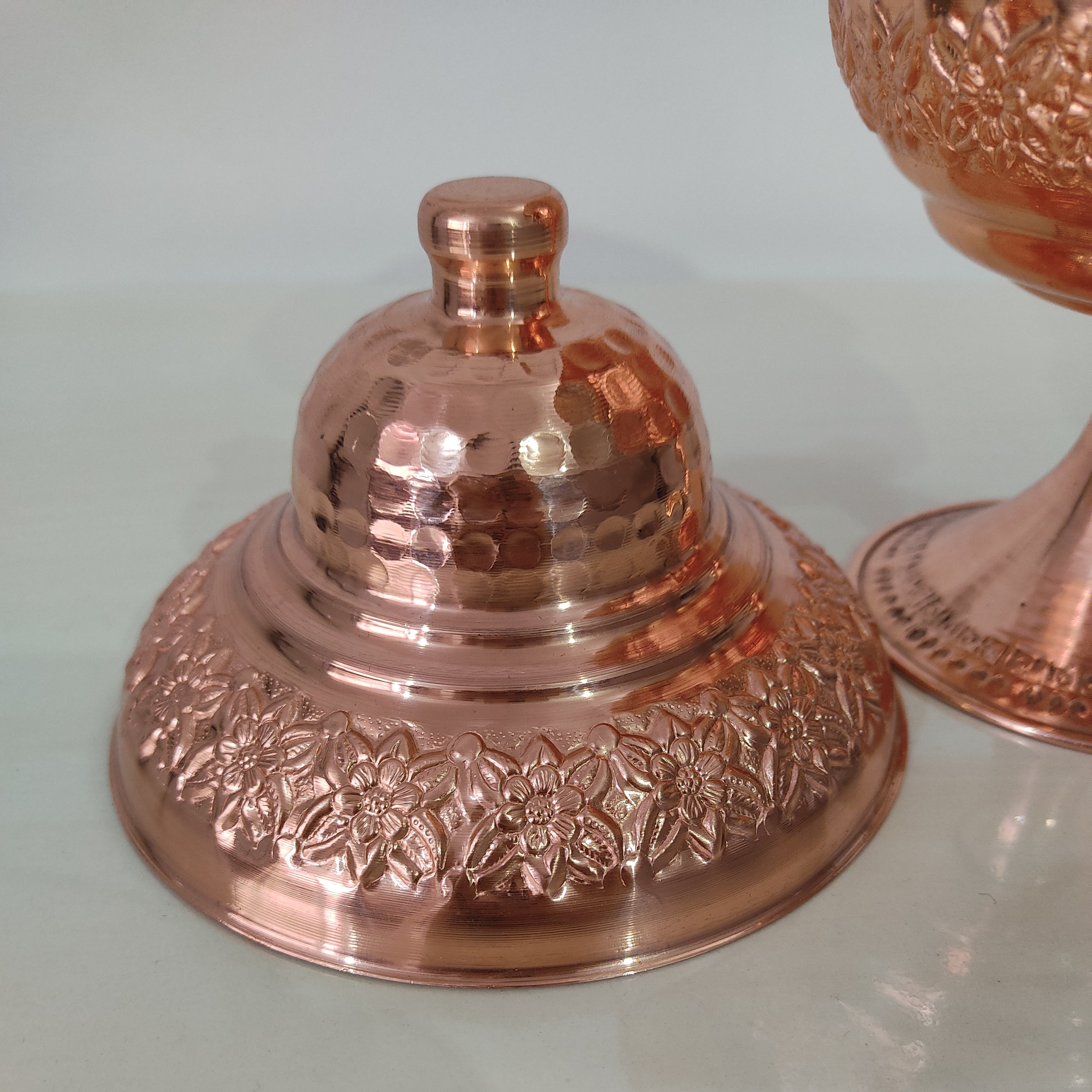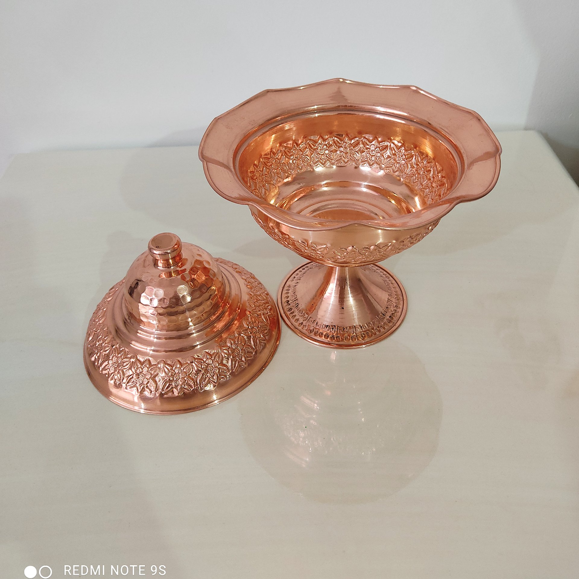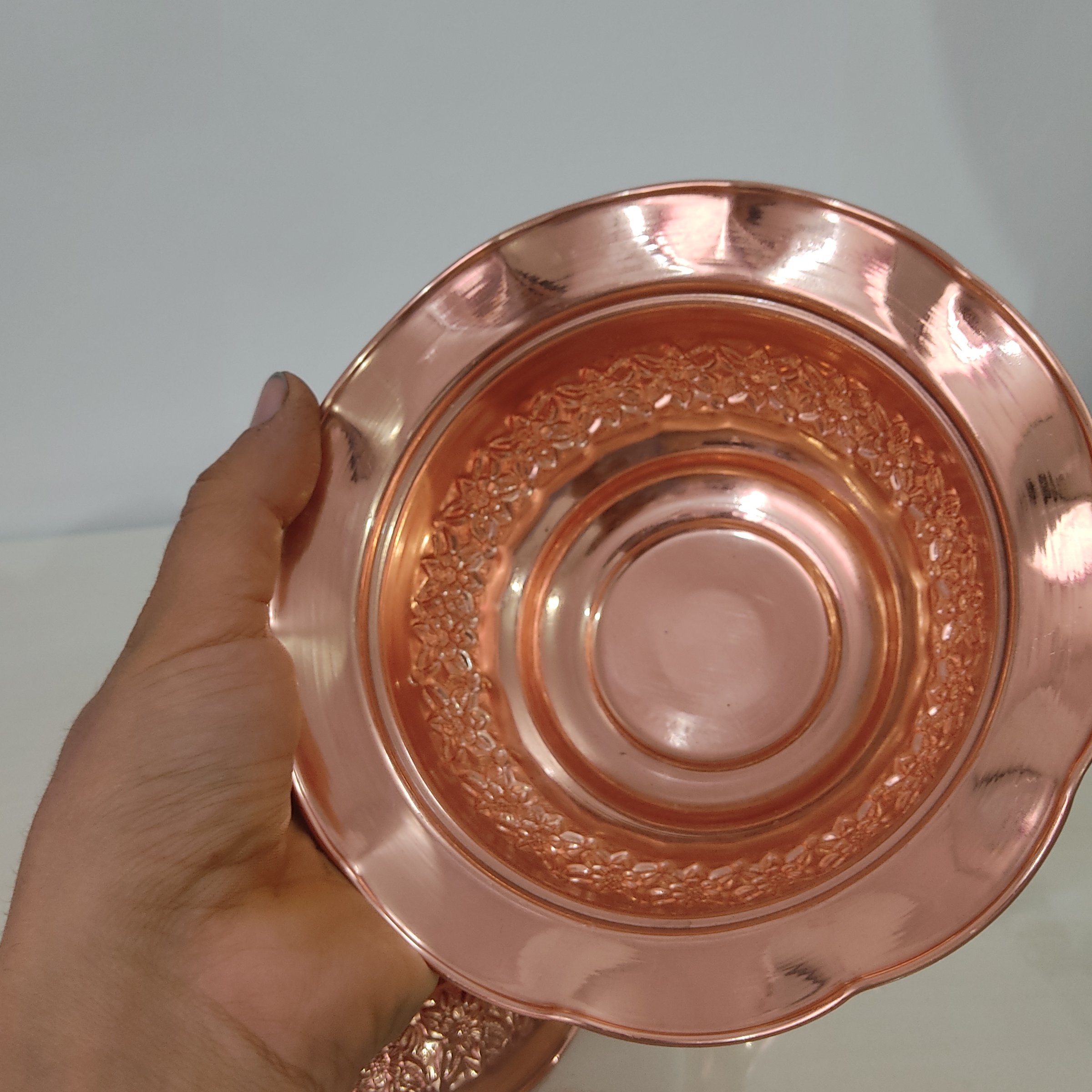 شکلات خوری در دار رز مس ریز گل برجسته نانو شده رنگ ثابت دور چین دار قطر دهانه ۱۸ ارتفاع تا نوک در ۱۹ ارسال رایگان مناسب شکلات و تنقلات