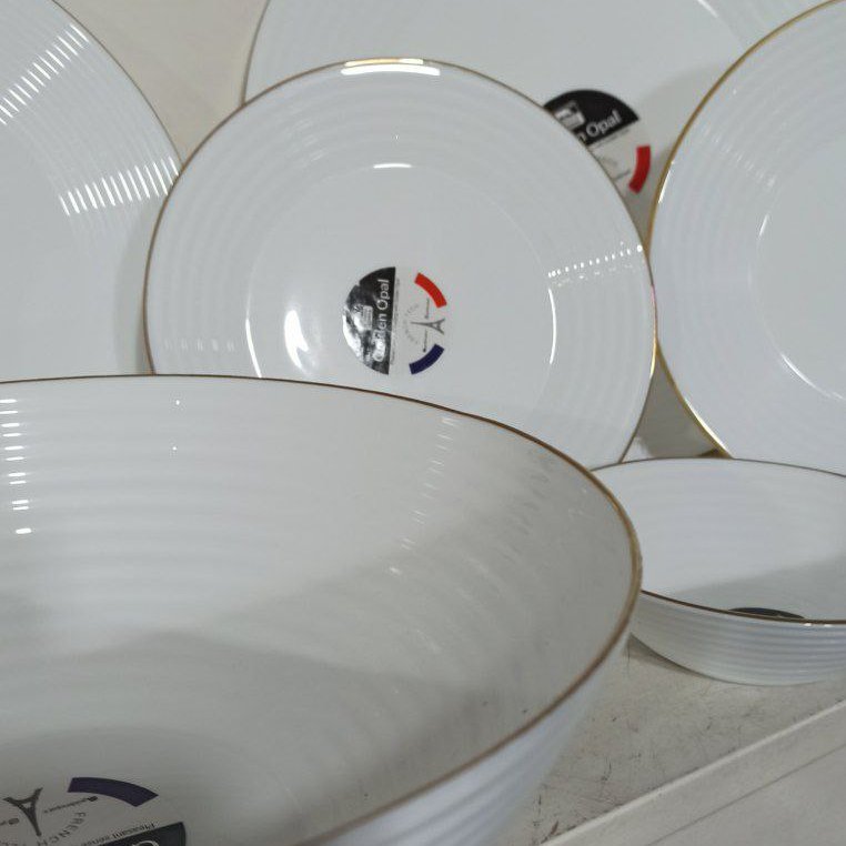 سرویس آرکوپال سفید لب طلا برند گلدن اپال قالب هارنا تحت لیسانس فرانسه کیفیت عالی ۲۶ پارچه شامل ۶ پلوخوری ۶ خورشت خوری ۶ میوه خوری ۶ پیاله ۱ دیس ۱ کاسه سالاد ارسال با باربری ، هزینه ارسال در مقصد پرداخت میشود.