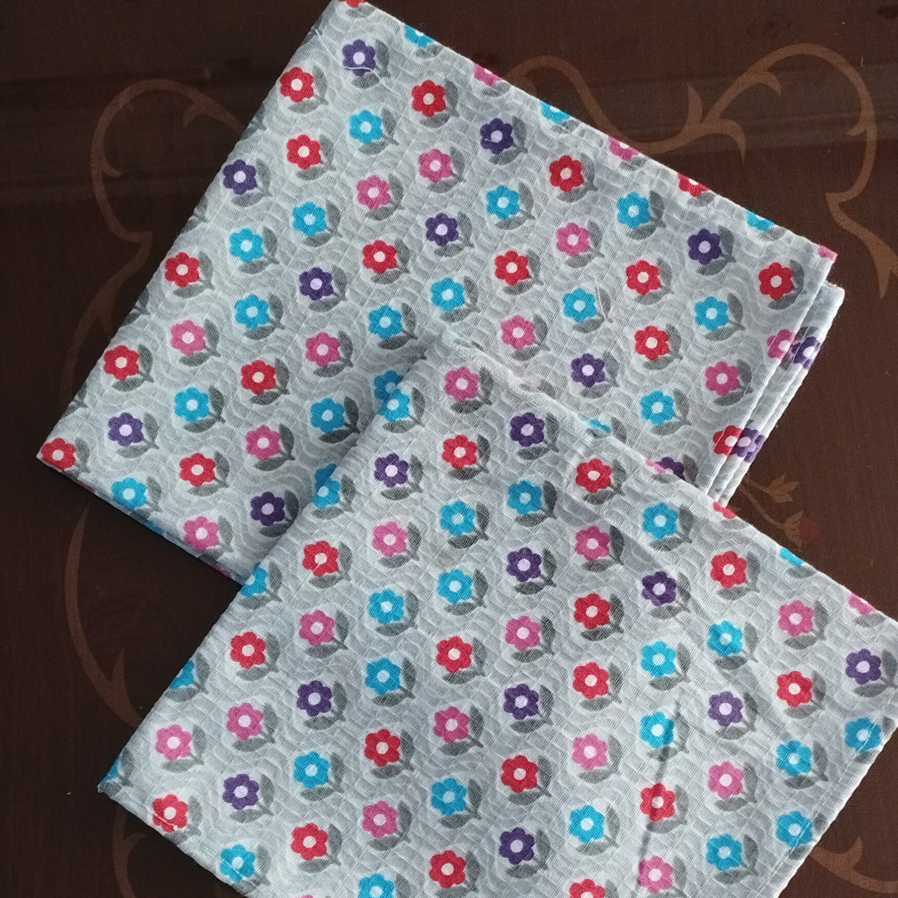 دستمال پارچه ای تترون نخ ابعاد 50در 50 جهت خشک کردن ظروف ودستمال سفره لطفا چون طرحها هربار تغییر میکند قبل از سفارش طرحهای موجود را از ما بخواهید