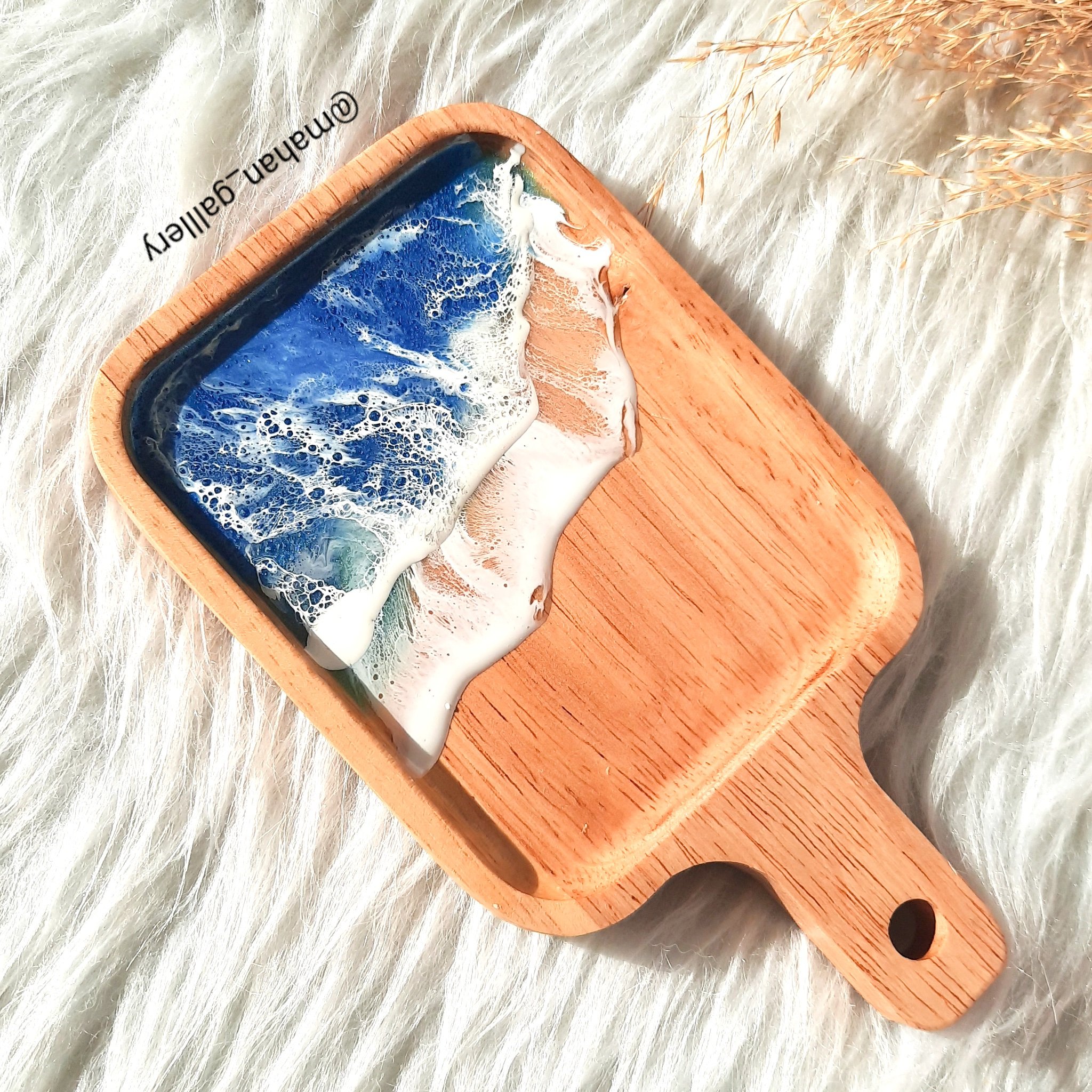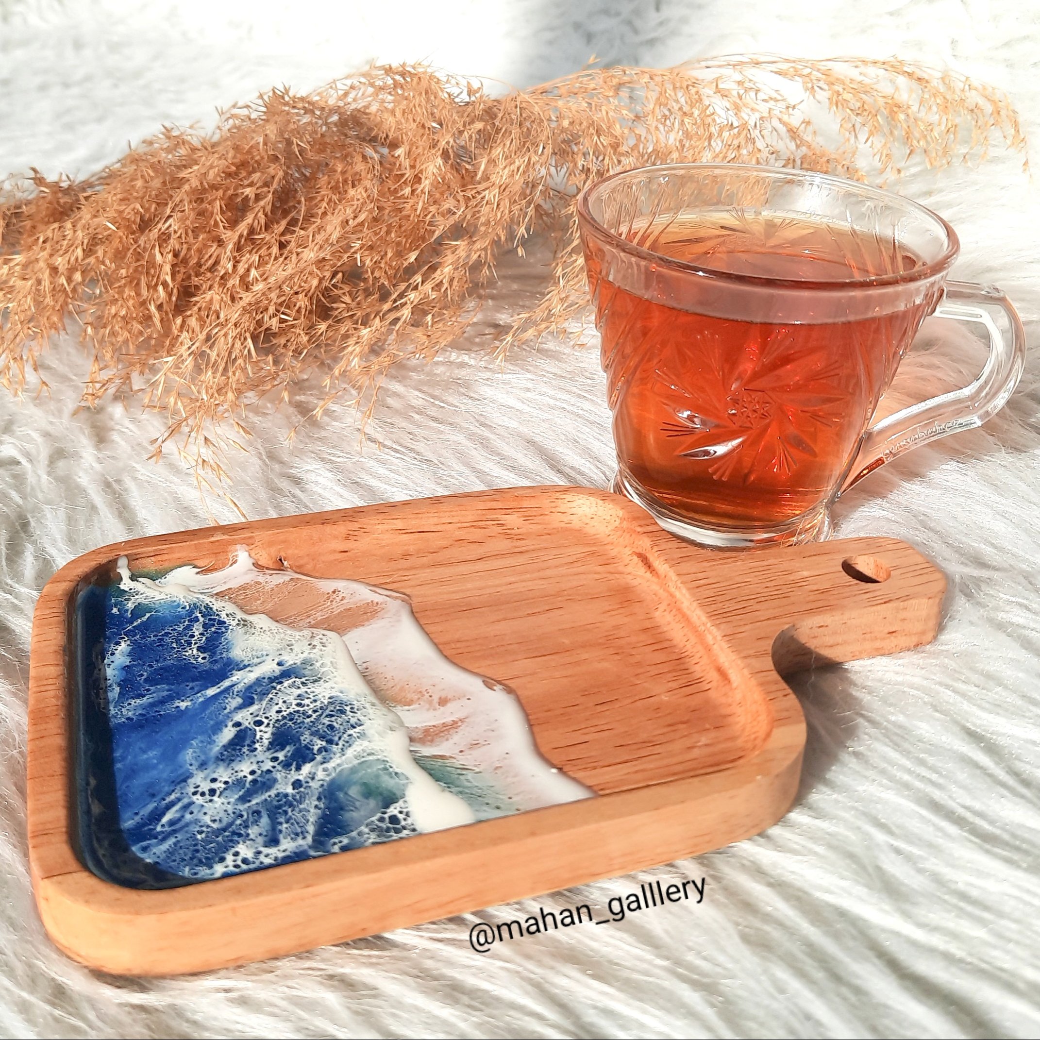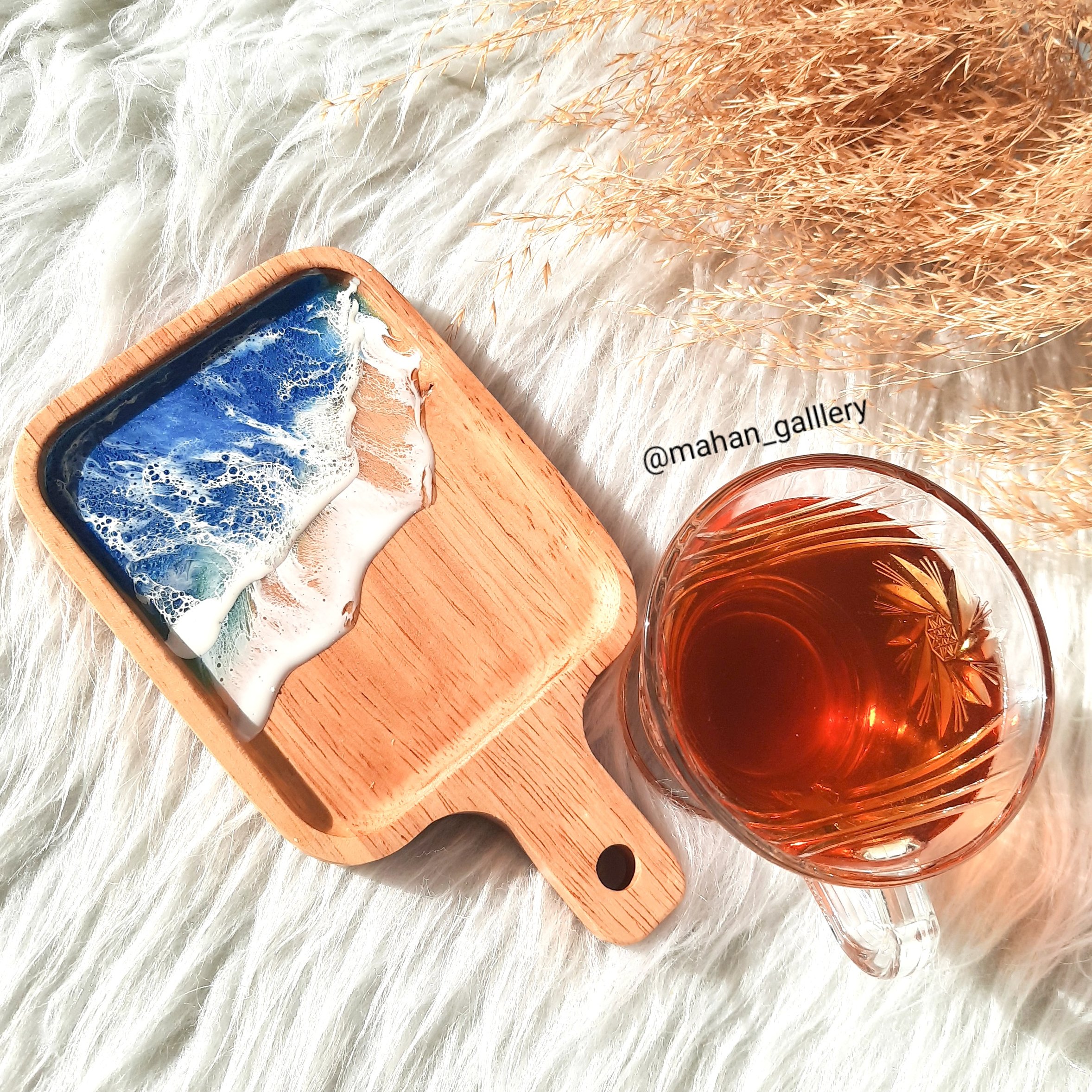 زیرلیوانی چوبی _رزینی با تکنیک طرح دریا ،مناسب برای قرار دادن ماگ و فنجان