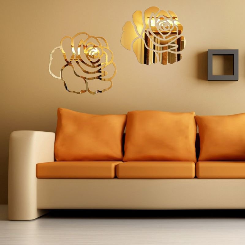 آینه دکوراتیو مولتی استایل طرح گل رز د دو رنگ طلایی و نقره ای مبلمونسرا مدل 262590