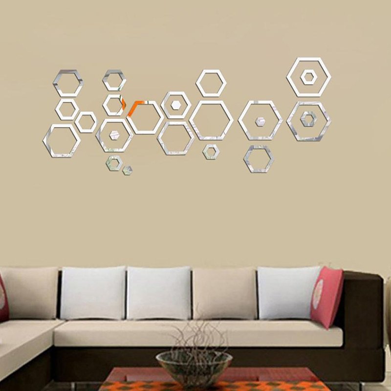 آینه دکوراتیو مولتی استایل، طرح 6ضلعی، بسته 24 قطعه، در دو رنگ طلایی و نقره ای مبلمونسرا مدل 262005