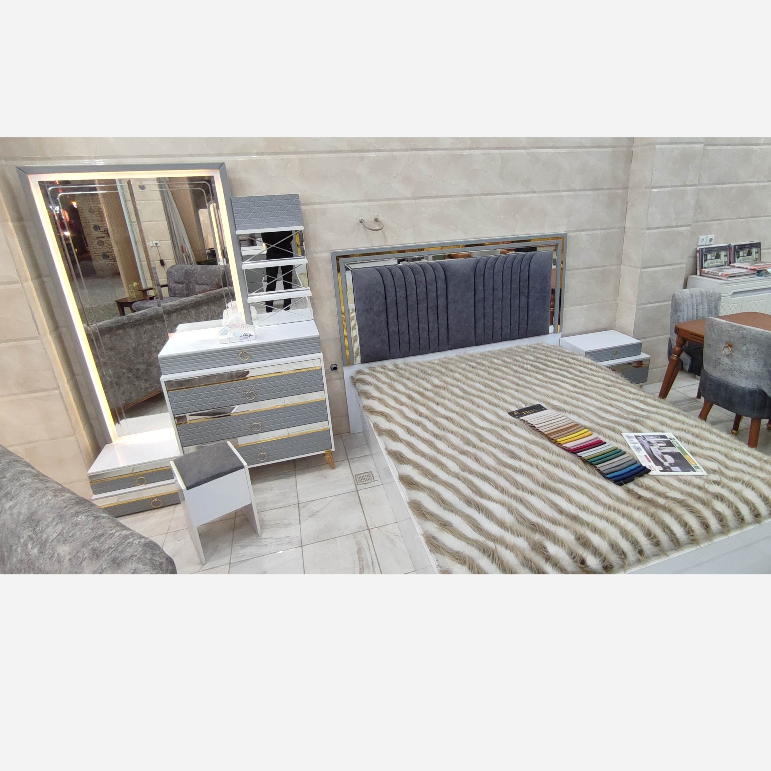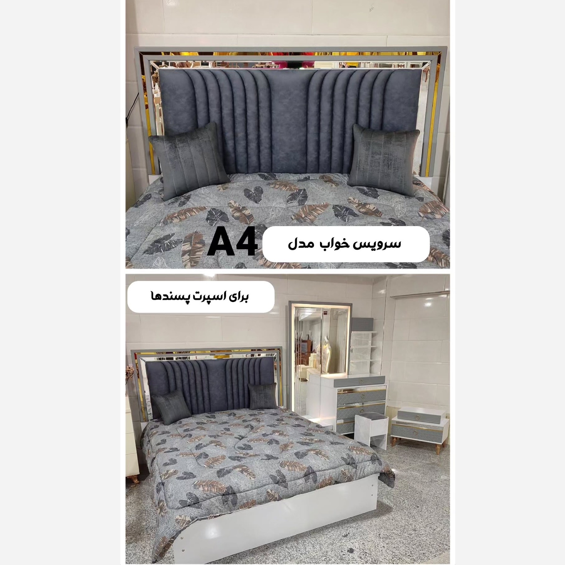 سرویس تخت خواب مدل A4 سفید طوسی مبلمونسرا مدل 225988