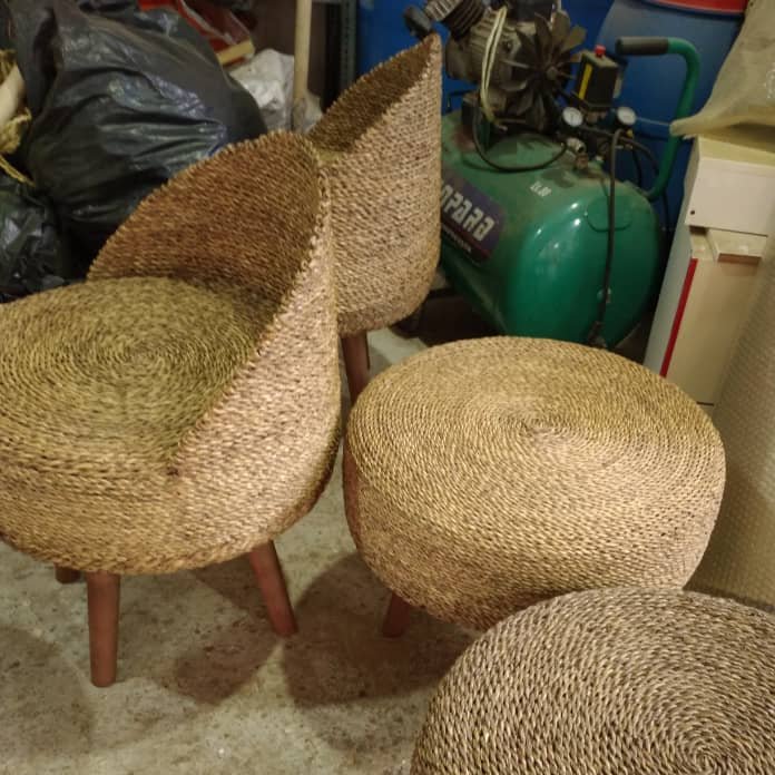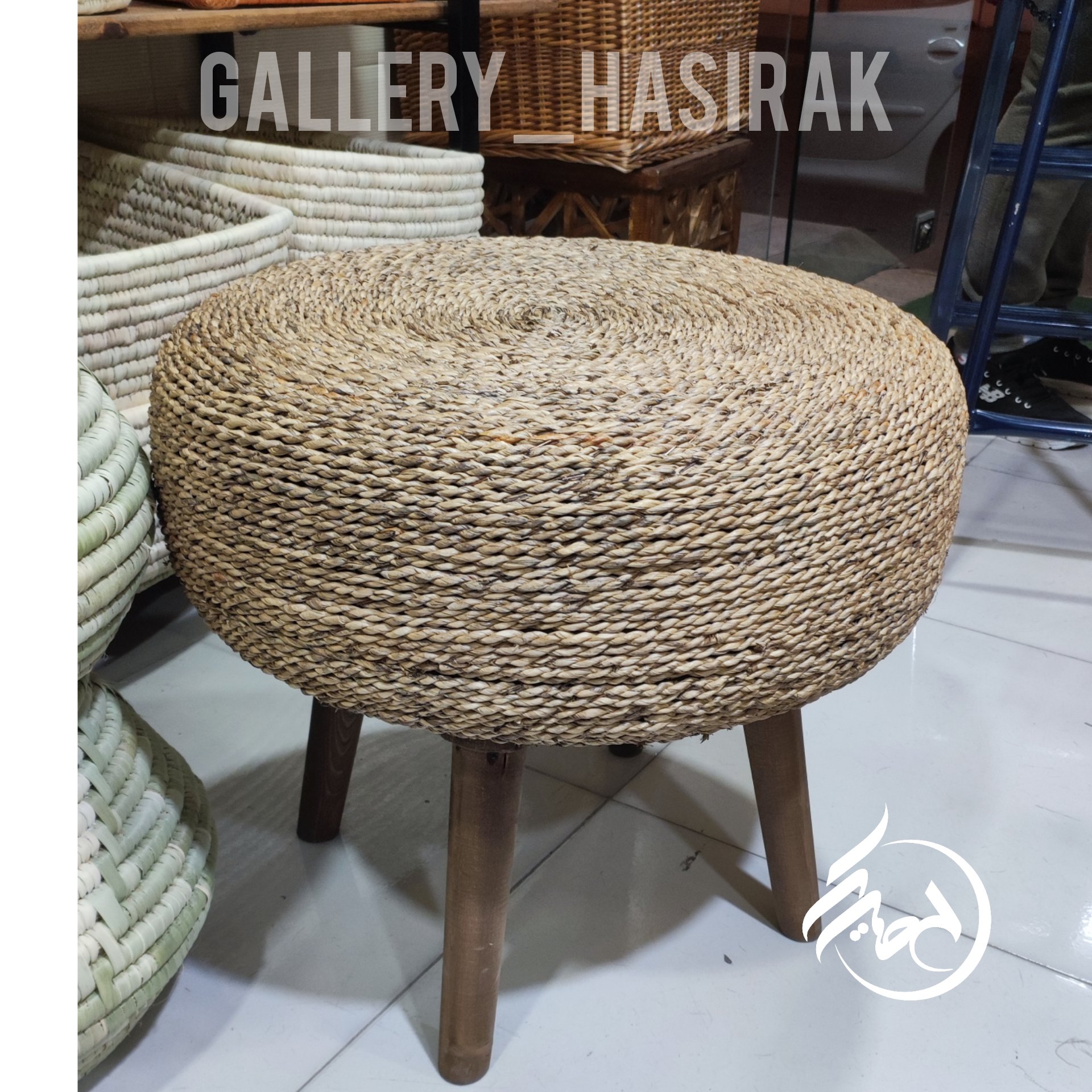 پاف حصیری پایه دار میز جلو مبلی حصیری قطر 50 مبلمونسرا مدل 212411