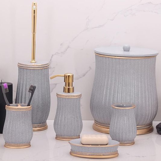 ست سرویس بهداشتی مدل لاکچری برند آذین ست - رنگ طوسی روشن طرح سنگ با طلایی - ضمانت کامل مبلمونسرا مدل 266001