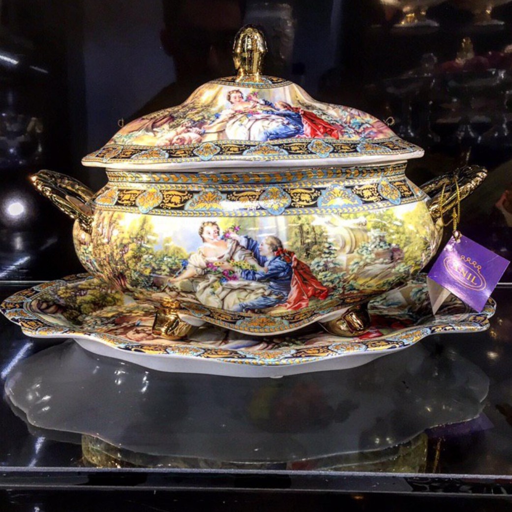 ظرف درب دار به همراه ست دیس چینی آنیل.