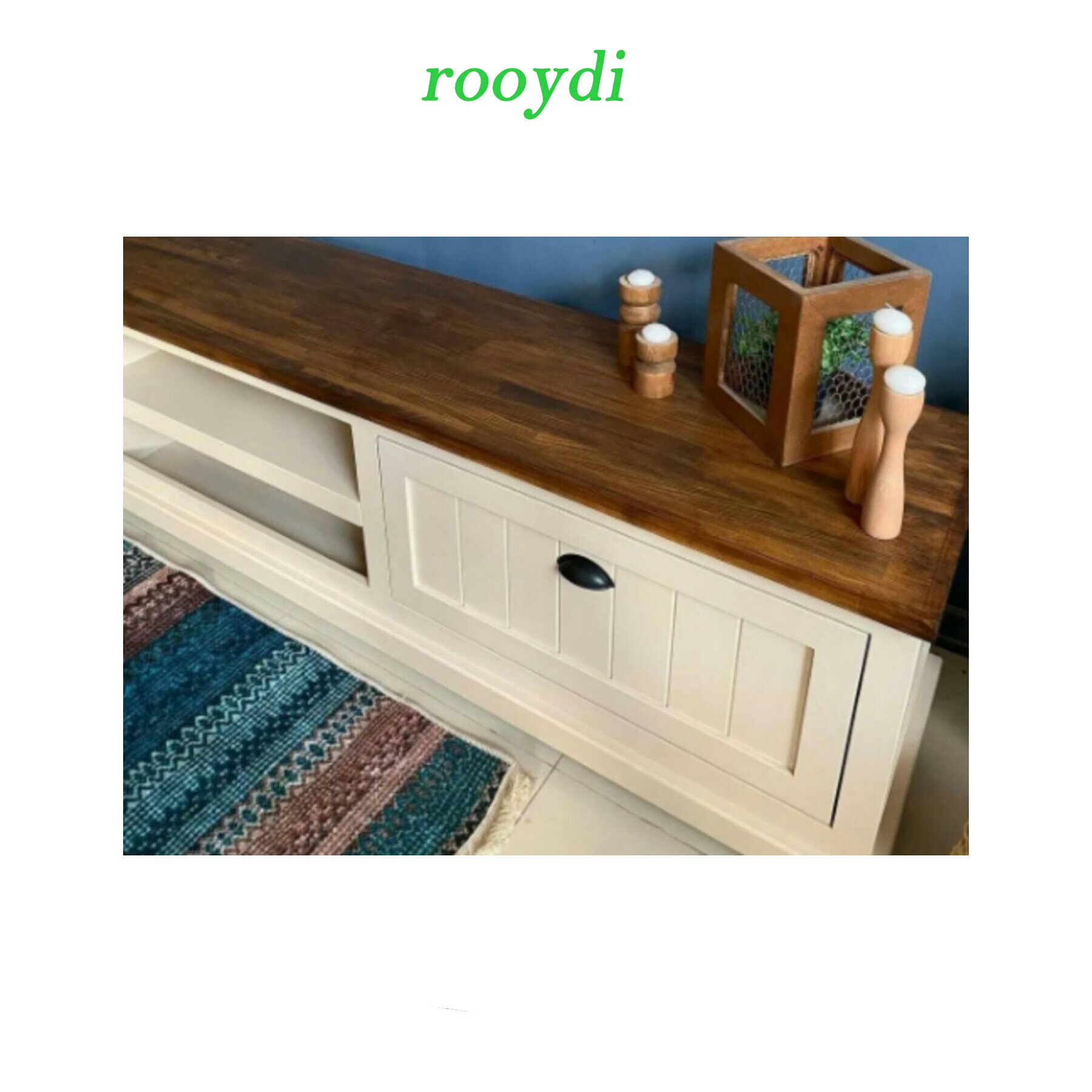 میزT.Vوکنارسالنی طرحی متفاوت و خاص رنگ سفید و روکش چوب قابل تغییر به رنگ دلخواه مشتری درصورت موجود بودن در بازار از این نوع دستگیره استفاده میشه