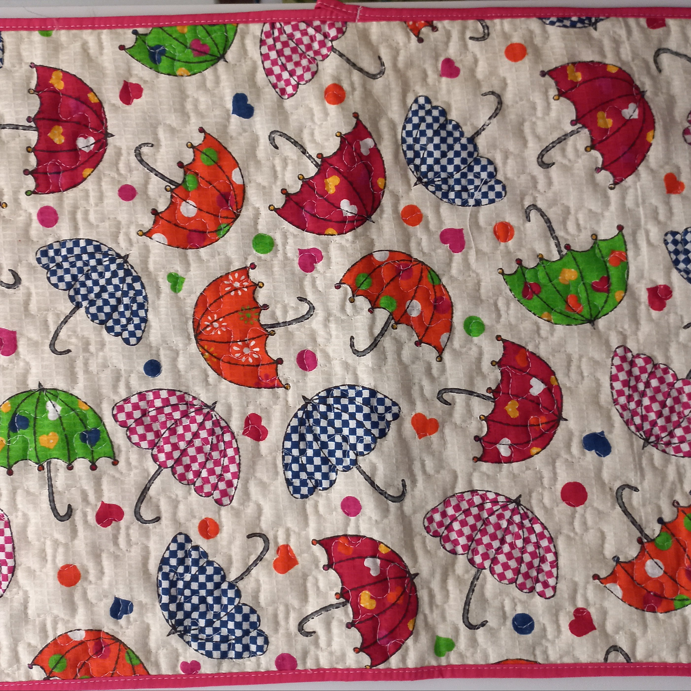نمگیر ظروف آشپزخانه دورو و مطلسه دوزی شده پارچه زنبوری صددرصد پنبه ای طرح چتر صورتی مبلمونسرا مدل 300986