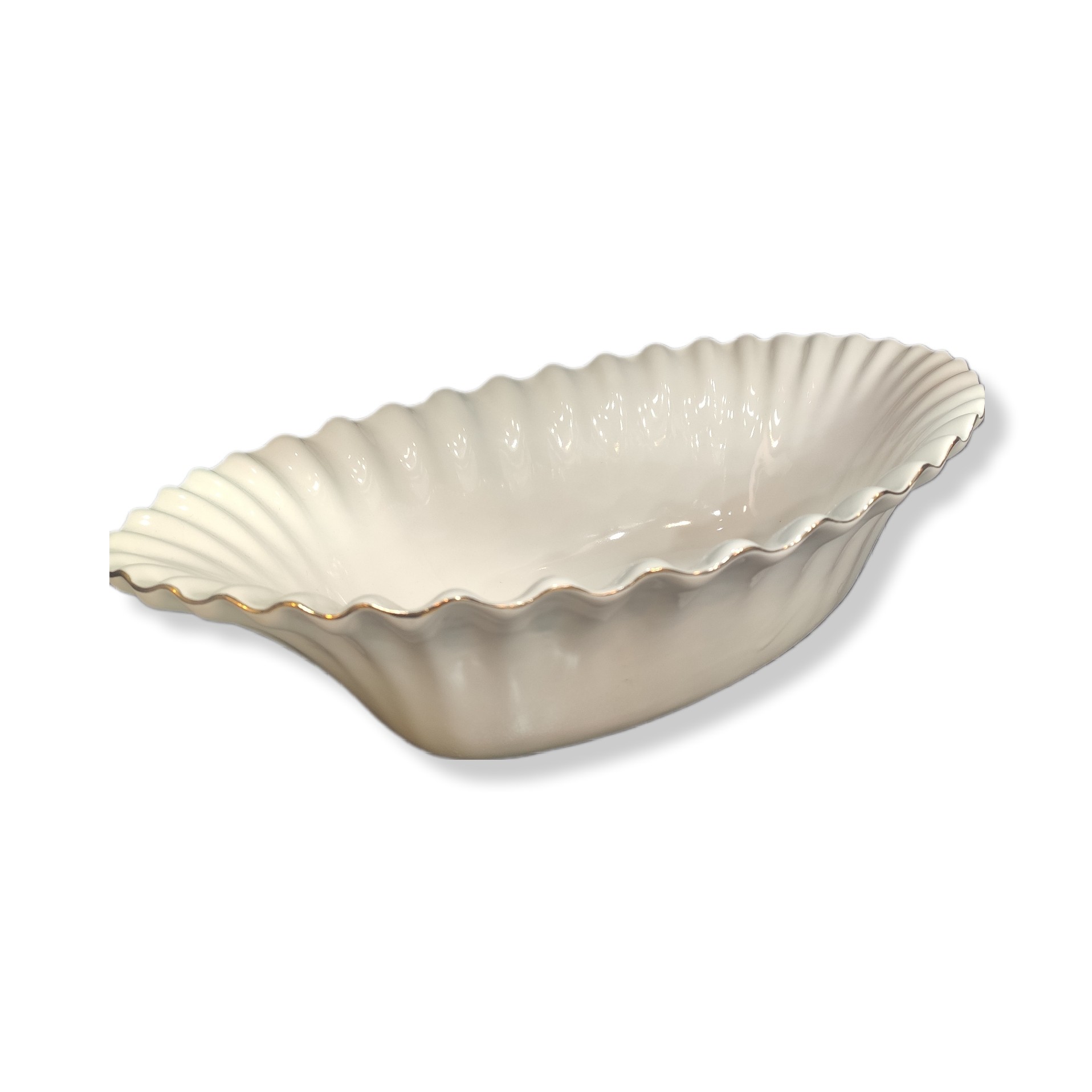 کشکول چینی مقصود طرح همگام خط طلا - موج دار لب طلایی کیفیت بالا ابعاد: عرض: ۲۱ سانتی متر طول: ۳۸ سانتی متر ارتفاع: ۱۰ سانتی متر