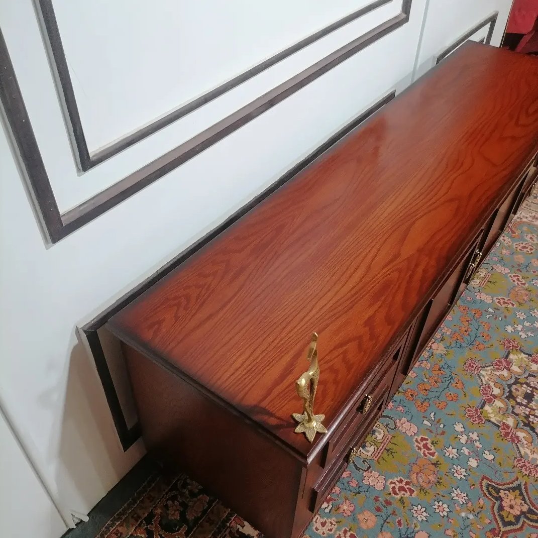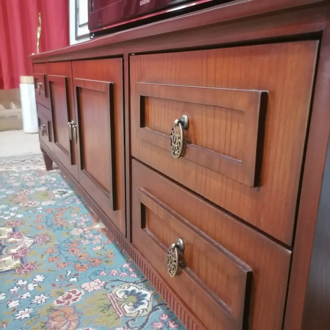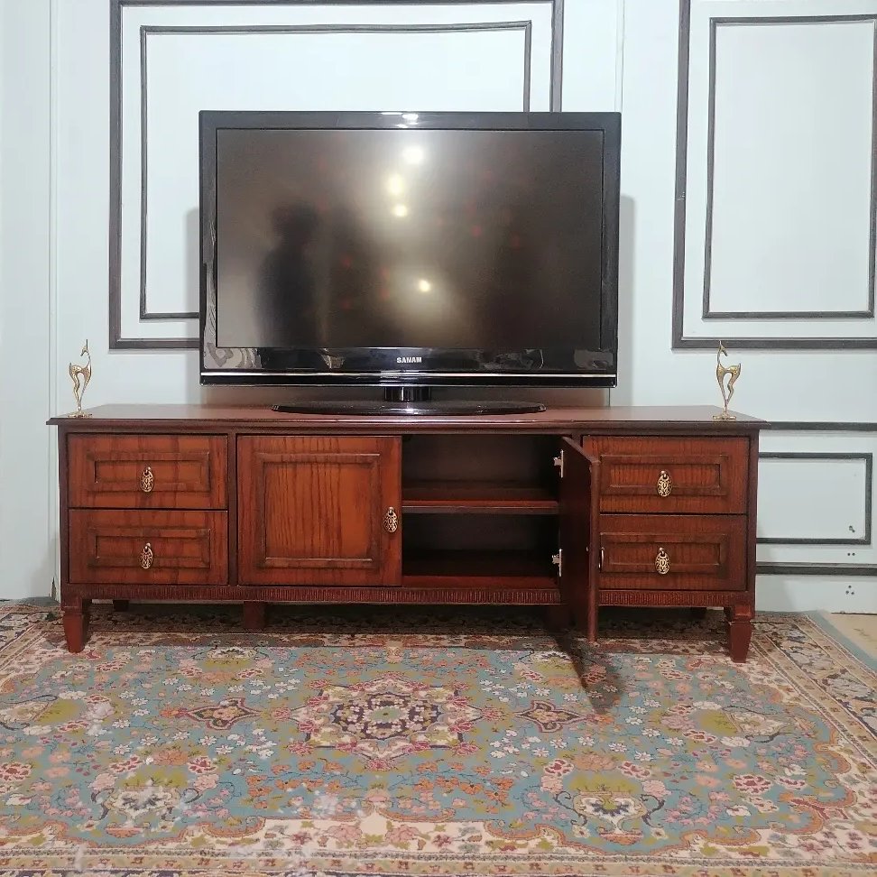 میزتلویزیون نئوکلاسیک فندقی سایز 160 📺 این میزتلویزیون با در و کشوهایی که داره خیلی جاداره و فضای عالیی برای ظرف و ظروف داره. ابعاد میزتلویزیون : 160/40/55 متریال 🪵 پایه ها چوب روس ، بدنه ام دی اف روکش چوب بلوط . میزتلویزیون در سایز 160 و 180 و 200 قابل ساخته. رنگبندی کاملا دلخواه شماست 🌈 ارسال به سراسر کشور داریم 🚛 هزینه ارسال به عهده مشتری و به صورت میباشد.