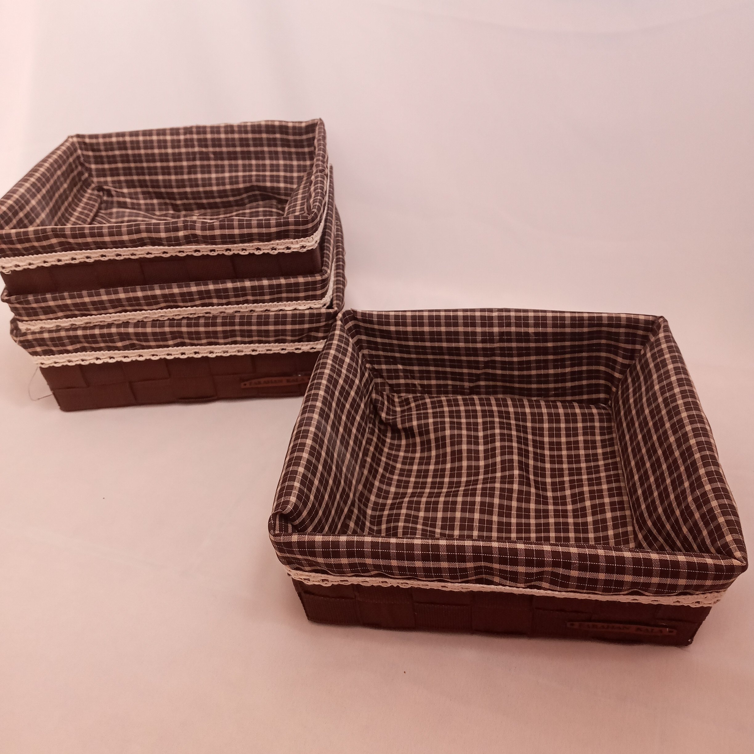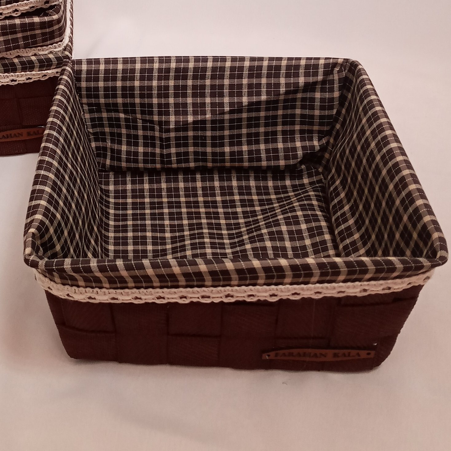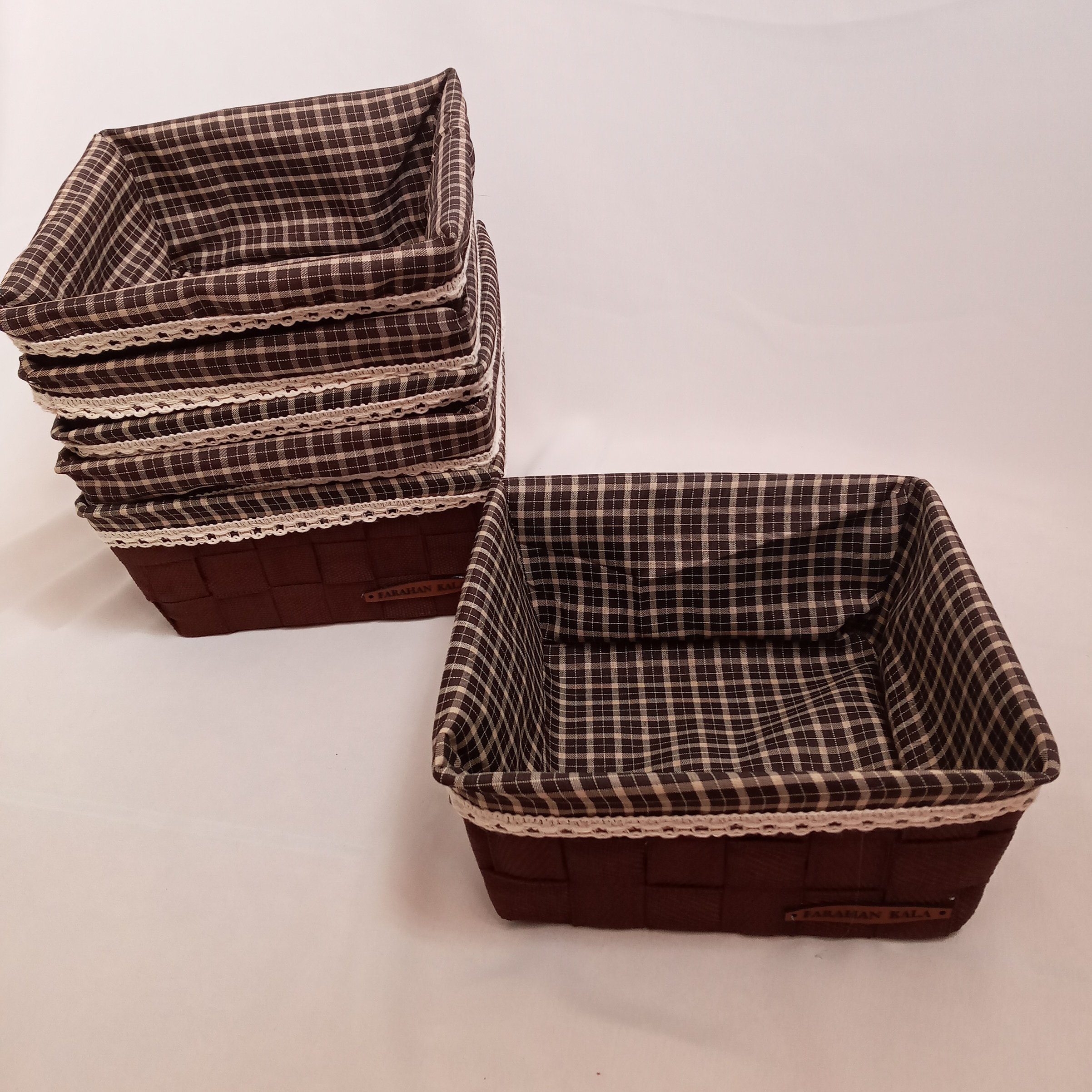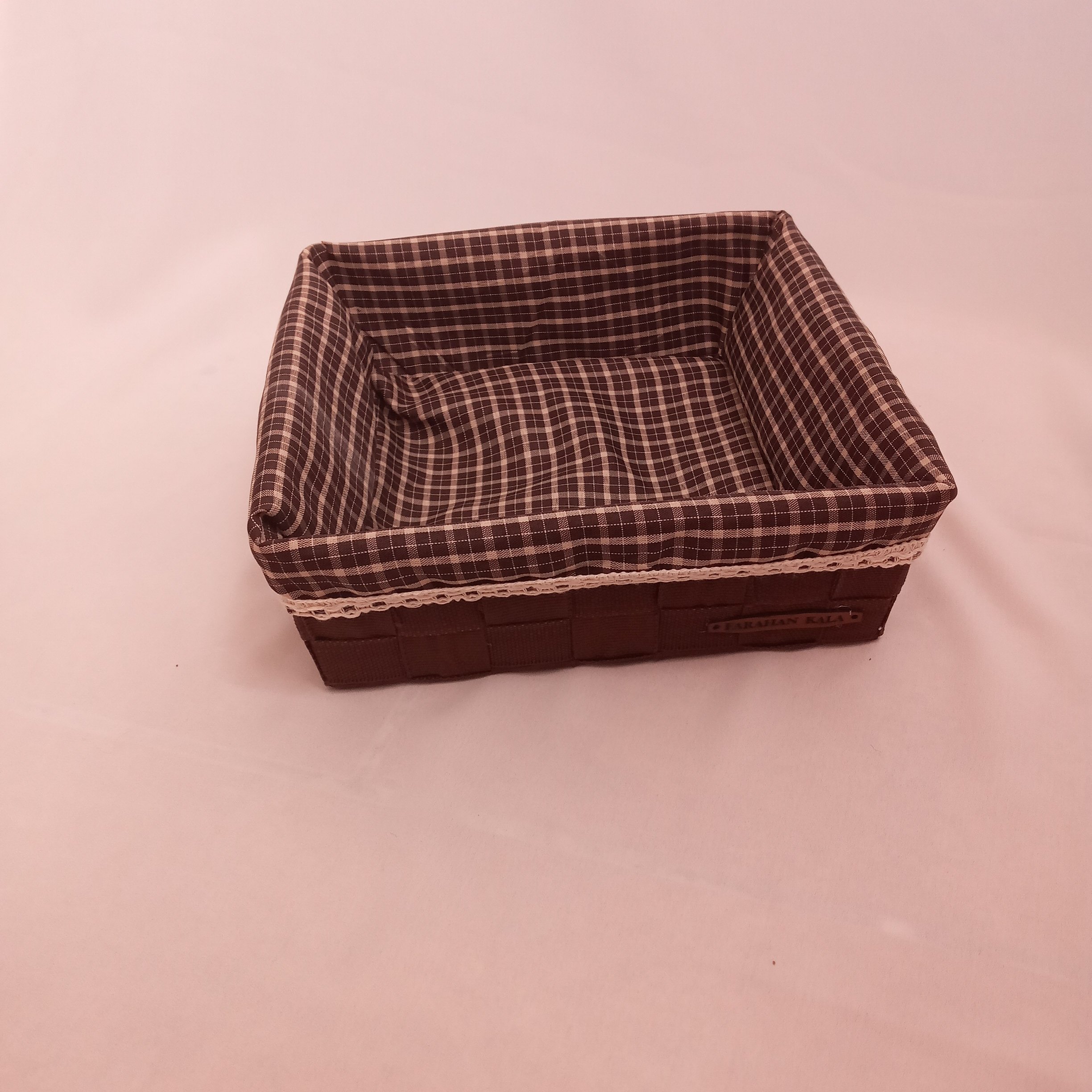 سبدنان مربع با کاور قابل شستشو شو بدنه فلزی وبافت دست مقاوم و ضد زنگ خوردگی مناسب برای نان ومیوه با پارچه چهارخانه و یراق کتان بدون آبرفت و جنس مرغوب