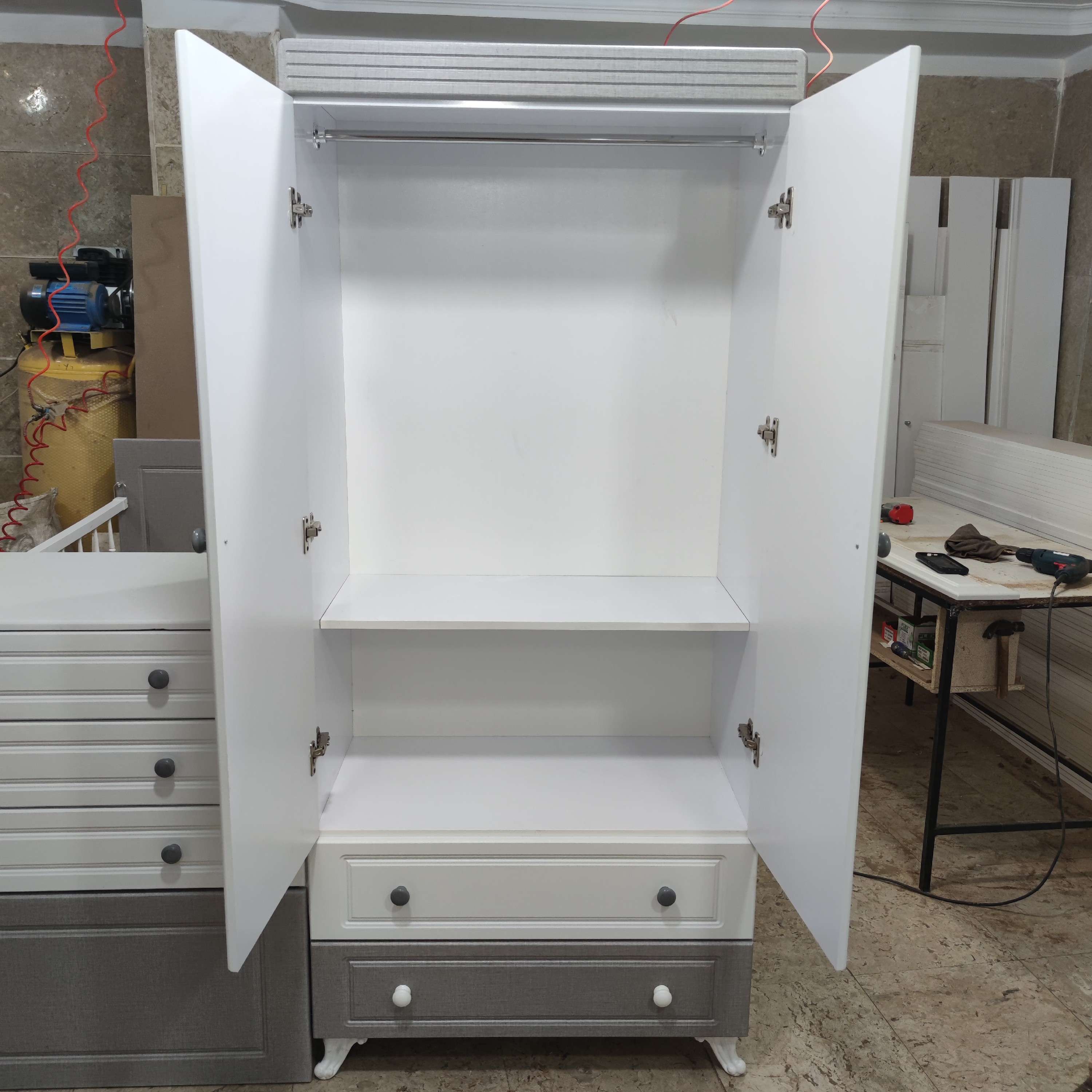 تمام ام دی اف _ ریل کشوها سه تیکه ساچمه ای پهن _ لولای درها آرام بند پمپی