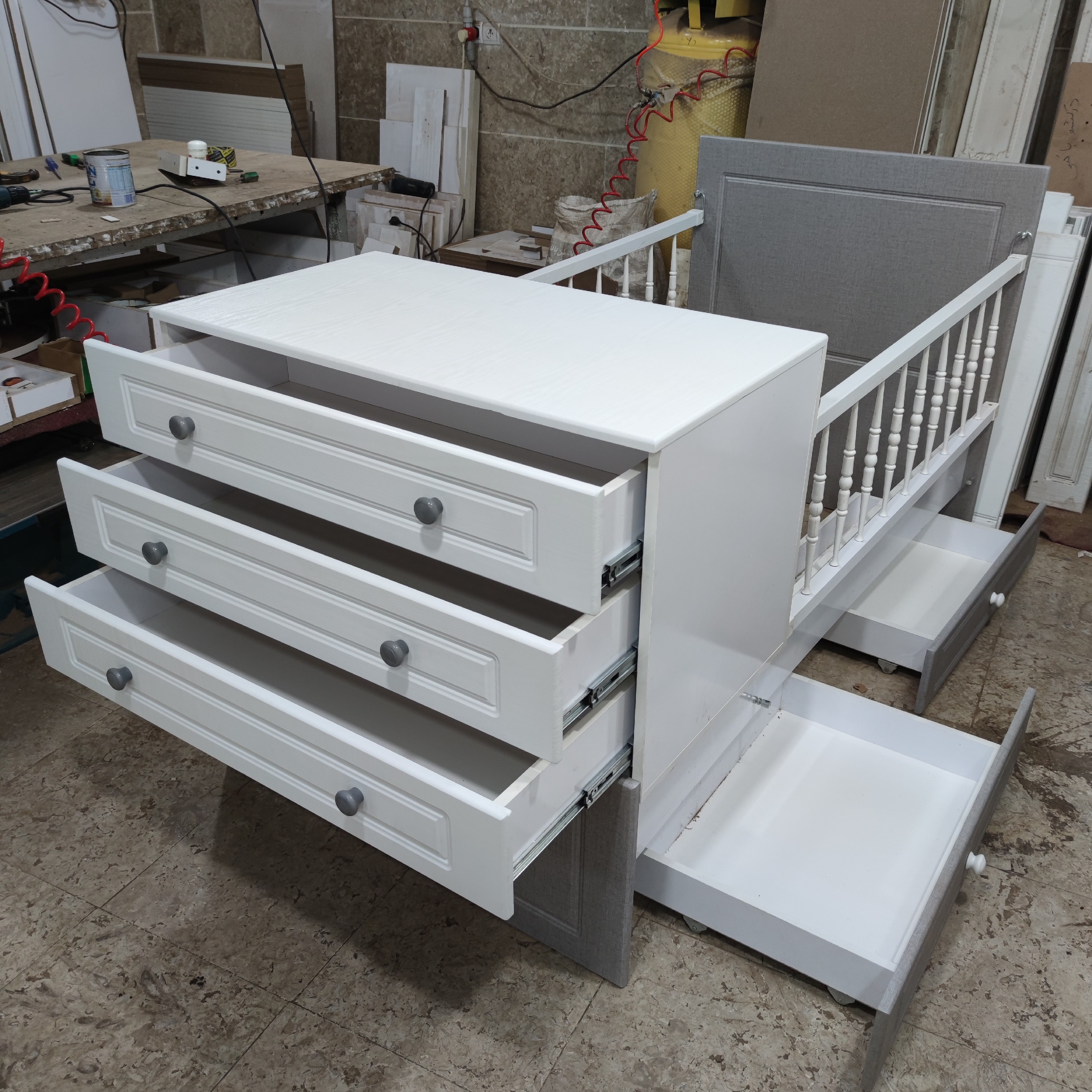 سرویس نوزادی تخت و کمد بچه سیسمونی نوزاد تمام ام دی اف مبلمونسرا مدل 226698